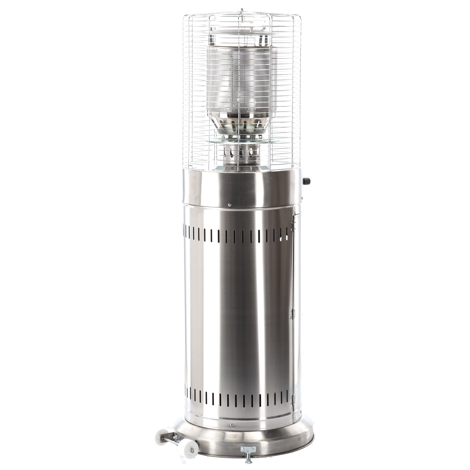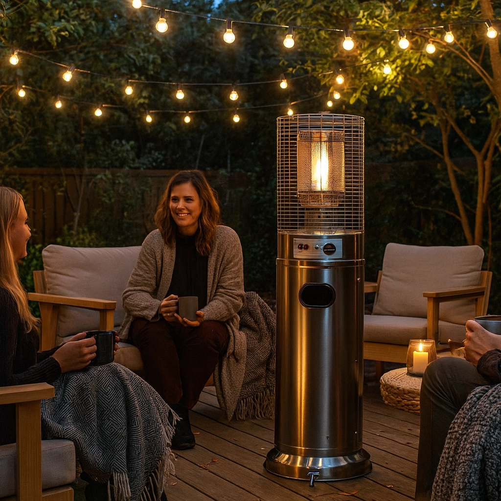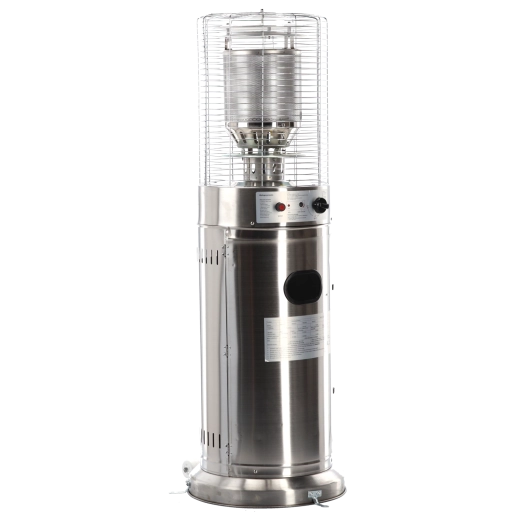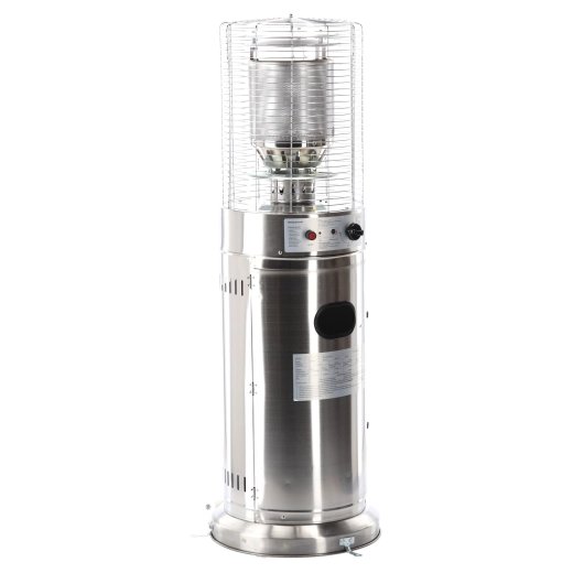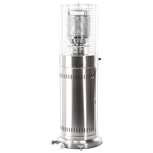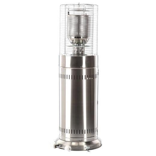 Deze kleine maar krachtige buitenverwarmer levert aangename stralingswarmte voor compacte buitenruimtes. Roestvrij staal zorgt voor lange levensduur en weerbestendigheid, het beschermrooster rond de brander verhoogt de veiligheid en het moderne cilindrische lichaam past perfect bij elke terras- of patio-stijl.