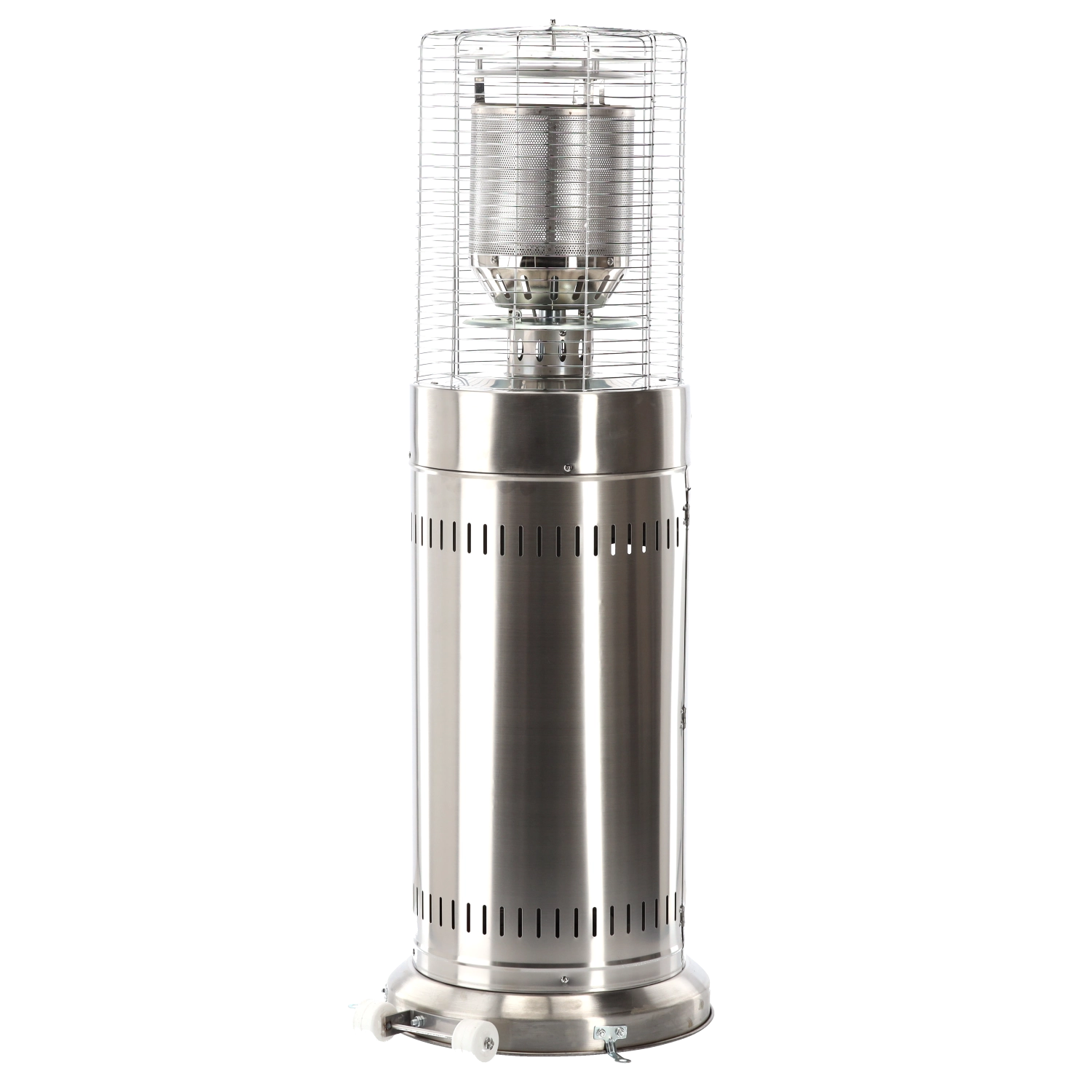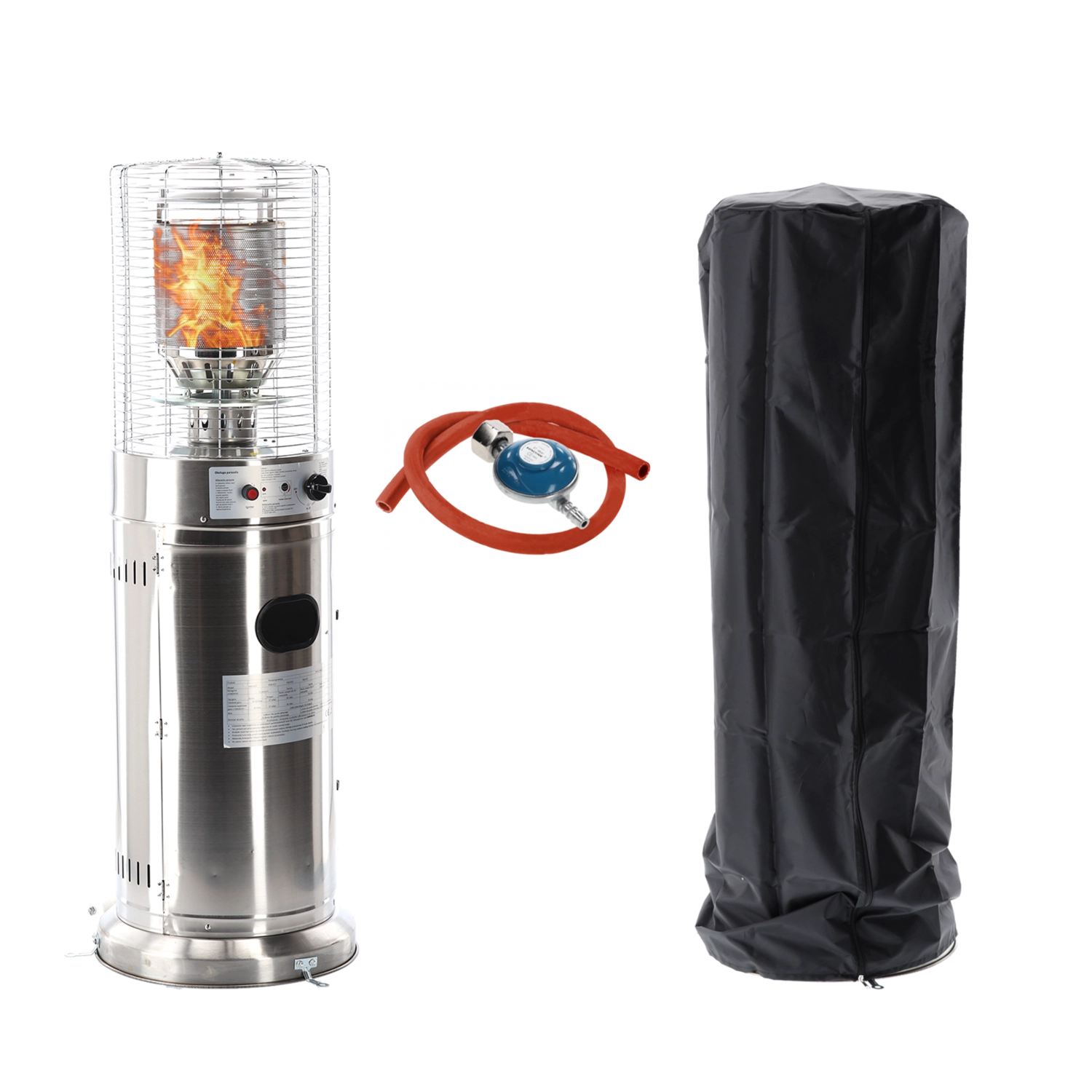 Compacte gas-terrasverwarmer van roestvrij staal met een hoogte van 136 cm die betrouwbare warmte biedt voor kleinere terrassen, balkons en zitplekken in de tuin. Dankzij elektronische ontsteking, kantelbeveiliging en automatische uitschakeling is het gebruik veilig en comfortabel. In de verpakking vind je een premium hoes, slang en drukregelaar – klaar voor een snelle start.