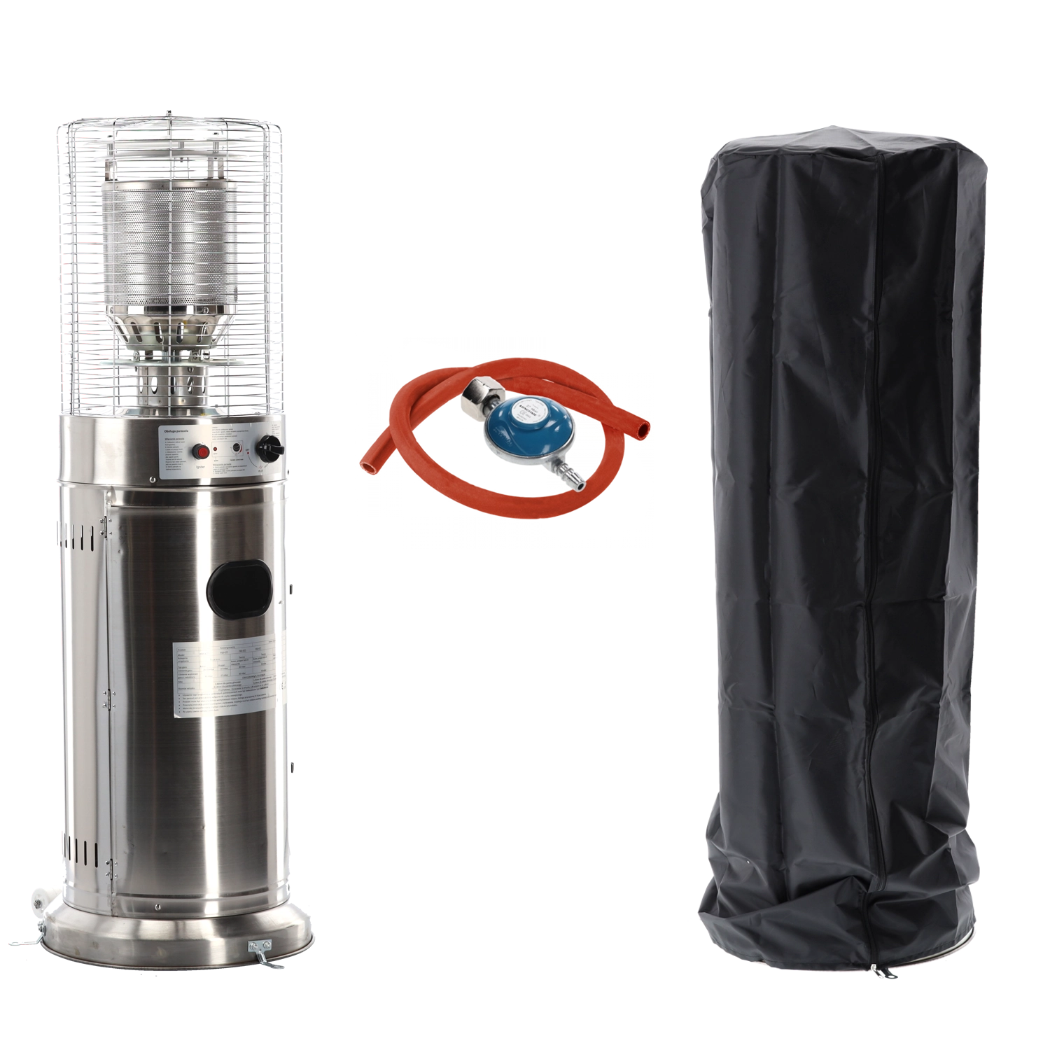 De verpakking bevat een beschermhoes voor opslag, een gasslang en een drukregelaar, zodat inbedrijfstelling snel en zorgeloos verloopt.