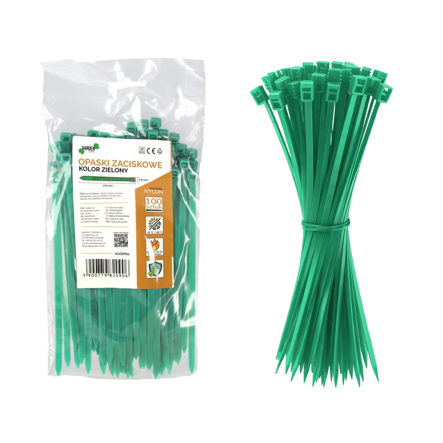 In de verpakking zitten 100 stuks, voldoende voor een snelle installatie van langere secties en voor het aanvullen van bestaande bevestigingen. De banden zijn eenvoudig aan te brengen, behouden hun vorm en bieden een stabiele en veilige bevestiging, ook bij wind en regen.