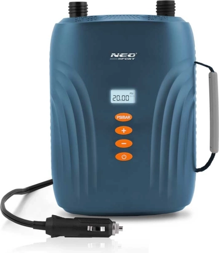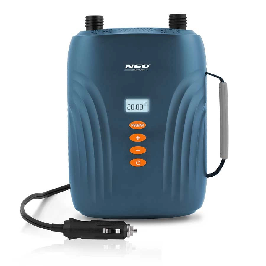 De elektrische pomp van NEO-SPORT is een betrouwbare hulp voor watersport en kamperen. Sluit hem eenvoudig aan op de 12 V autostekker, stel de gewenste drukwaarden in op het LED-display en druk op start. Twee motoren in het Double Motor™-systeem vullen eerst snel het volume en brengen vervolgens nauwkeurig op druk tot 20 PSI – snel, comfortabel en zonder moeite.