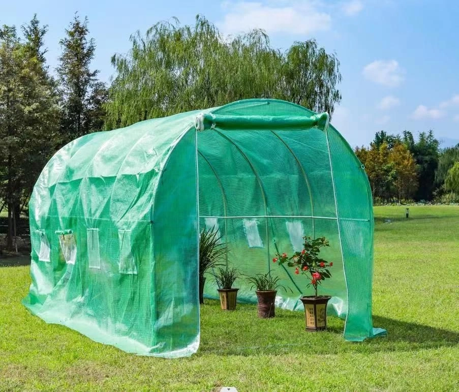 Deze ruime tuinkas helpt u het teeltseizoen te verlengen en beschermt planten tegen wind, regen en plagen. De stevige stalen constructie met anticorrosiebehandeling en de versterkte PE-folie 140 g/m² met UV-bescherming zorgen voor een lange levensduur en stabiliteit, ook bij wisselvallig weer.