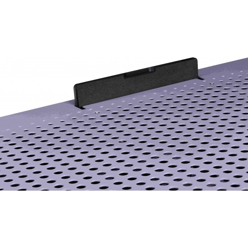 Het geperforeerde metalen oppervlak verhoogt de luchtdoorlaatbaarheid en verbetert de warmteafvoer over het volledige oppervlak van de laptop.