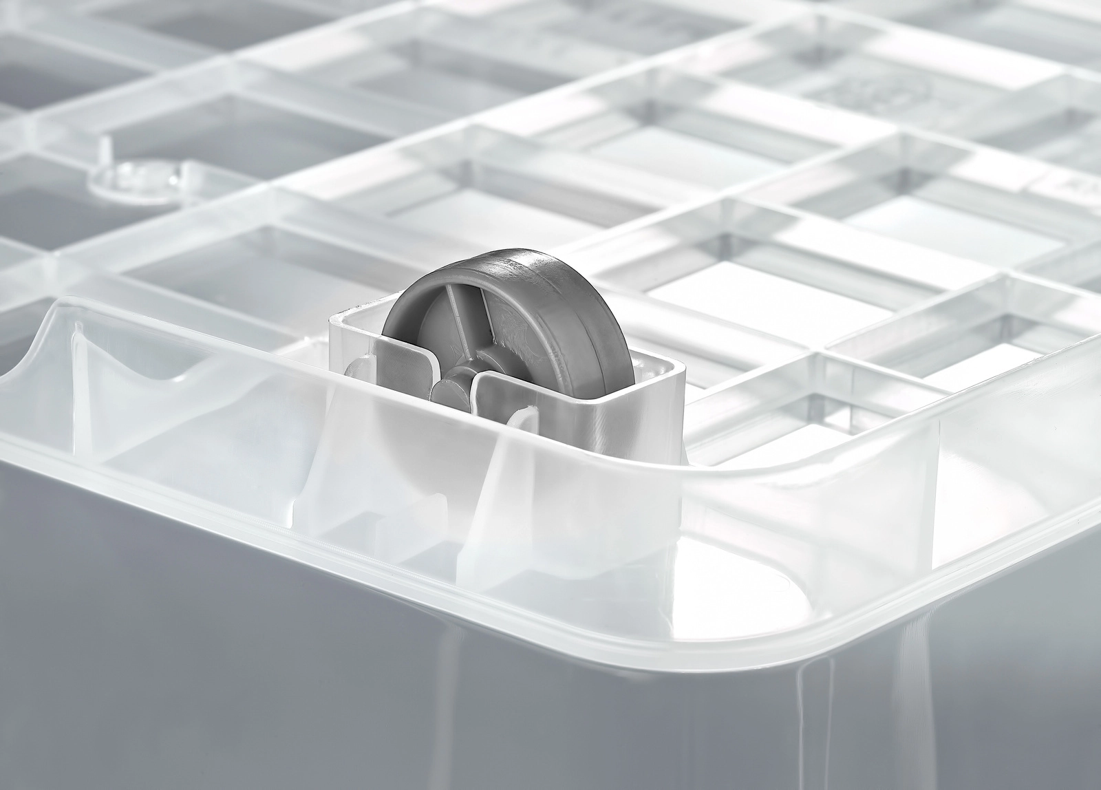Geïntegreerde wieltjes maken eenvoudig verplaatsen mogelijk, zelfs bij volle belasting, zodat je de box gemakkelijk neerzet waar hij nodig is. Het deksel met twee stevige clips zorgt voor een betrouwbare afsluiting en bescherming tegen stof en vocht.