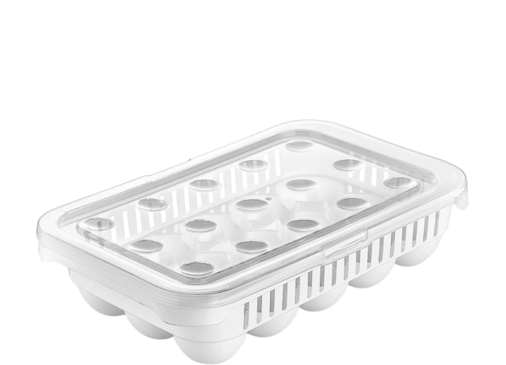 Dankzij de praktische vorm past de houder in de meeste koelkastplanken en beschermt hij eieren tegen schokken en ongewenste geuren. Na gebruik plaats je hem eenvoudig in de vaatwasser.