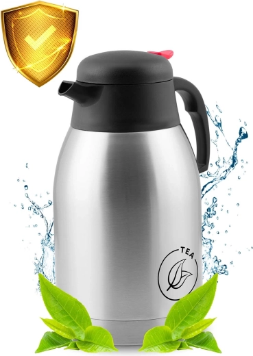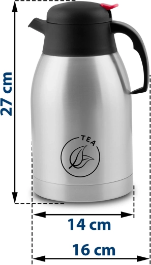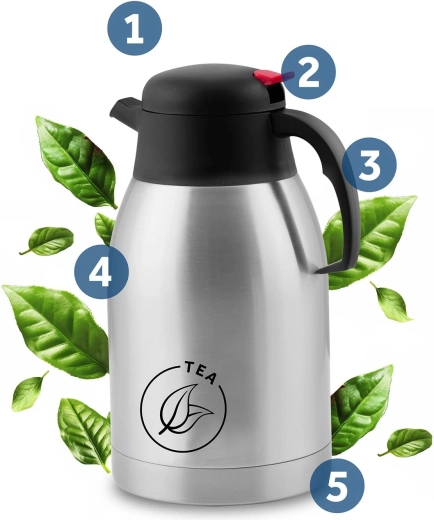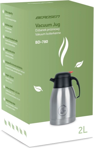 De praktische automatische sluiting met rode knop maakt comfortabel schenken met één hand mogelijk, zonder morsen. Het afsluitende deksel helpt de temperatuur betrouwbaar vast te houden en lekkage te voorkomen. De lichte constructie (slechts ca. 0,887 kg) maakt meenemen naar picknicks, uitstapjes of familiefeesten eenvoudig.