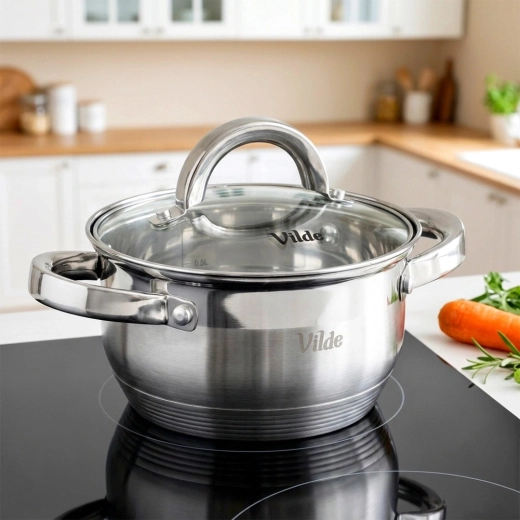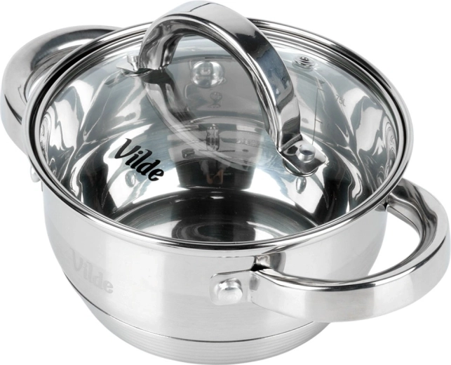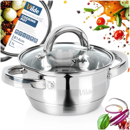 Compacte roestvrijstalen pan met een inhoud van 1 l en een diameter van 14 cm, voorzien van een duurzaam glazen deksel, ideaal voor kleinere porties. Dankzij de akuthermische bodem verdeelt hij de warmte gelijkmatig, is geschikt voor alle soorten kookplaten, inclusief inductie en kan ook in de oven tot 150 °C. De ventielopening in het deksel vereenvoudigt de controle tijdens het koken en voorkomt overkoken. Roestvrij staal zorgt voor een lange levensduur en eenvoudige reiniging in de vaatwasser.