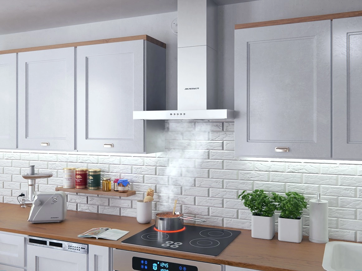 De afzuigkap biedt 3 snelheden met eenvoudige knopbediening en 5‑laagse aluminium vetfilters die vet effectief opvangen. Hij kan werken als afvoer naar de schoorsteen of als recirculatie met de optionele koolstoffilter Berdsen TYP‑A (los verkrijgbaar). Dankzij de compacte afmetingen van 60 × 45 cm en een hoogte van 45–75 cm past hij in uiteenlopende keukenopstellingen.