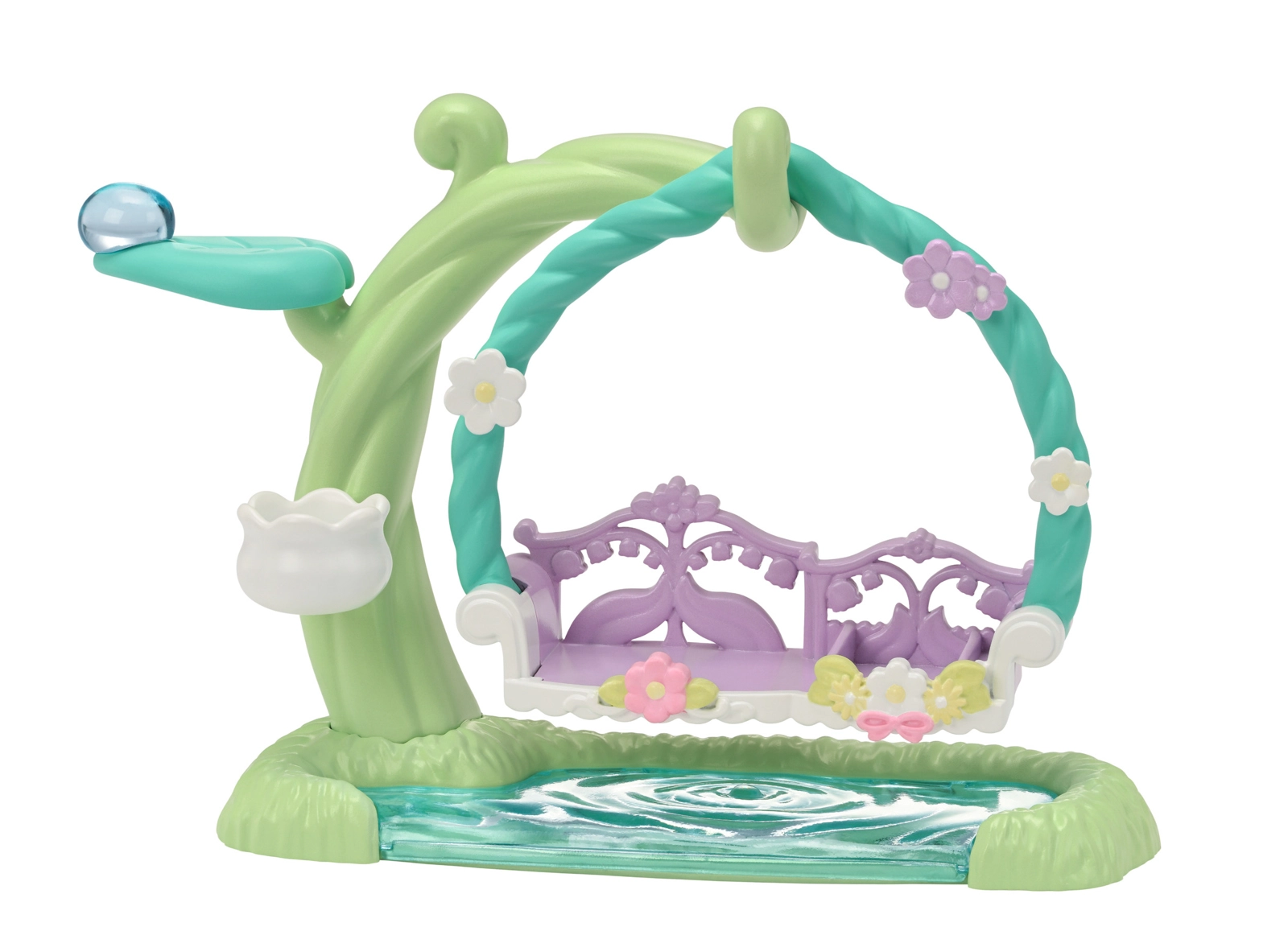 De figuren hebben een fluweelzachte afwerking, gedetailleerde outfits en beweegbare delen voor eenvoudig poseren. Bij de set horen een decoratieve boom met hangbank‑schommel en bloemenaccessoires. Ideaal voor zelfstandig spel of als uitbreiding van het Sylvanian‑dorp.
