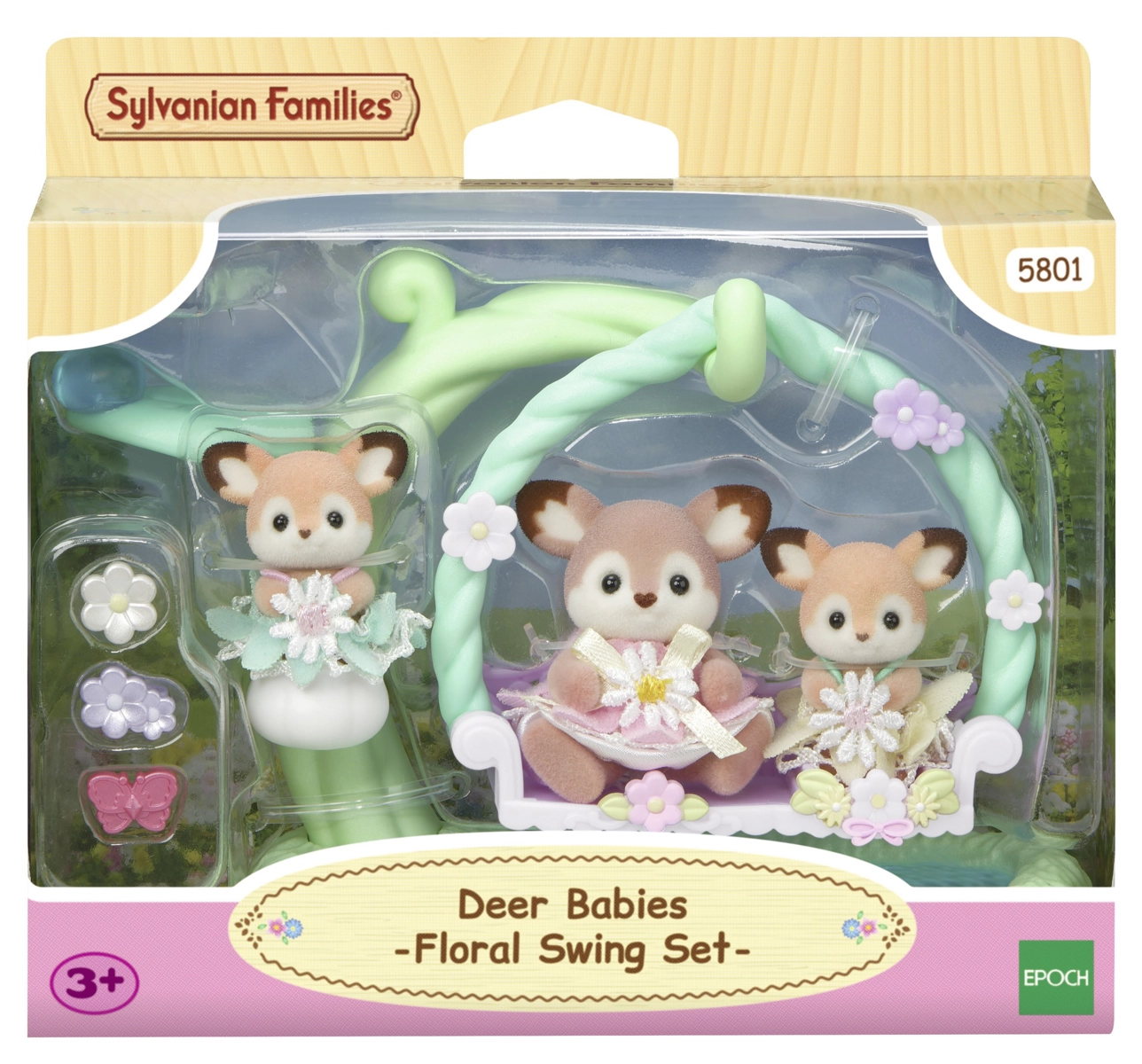 Sylvanian Families herten op de bloemen­schommel – speelset met 3 figuren