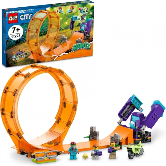 Betreed de wereld van stunthelden met de LEGO City Chimpansee-stuntlus. De imposante reusachtige loop, werkende schans en mechanische chimpansee vormen het decor voor spannende stunts. De motor met vliegwiel schiet bliksemsnel weg en kan zelfs veeleisende flips door de loop aan.