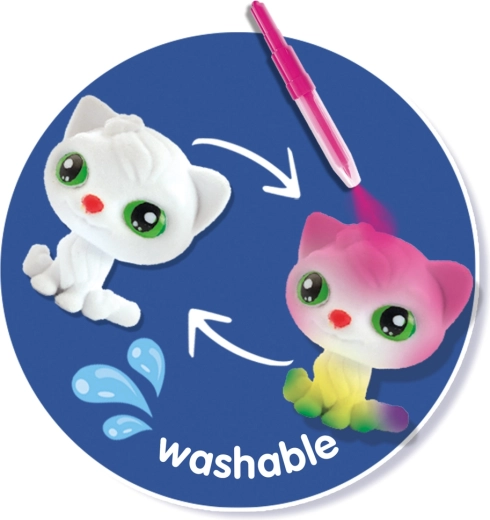 Ontdek de leuke creatieve set met kittens, die maar liefst 3 verrassingen en eindeloze knutselmogelijkheden biedt. Met 4 gekleurde blaasstiften geef je de kittens vrolijke kleuren, stippen en strepen. De creaties kun je eenvoudig afspoelen onder stromend water en steeds opnieuw maken. Verzamel alle 9 schattige kittens uit de collectie!