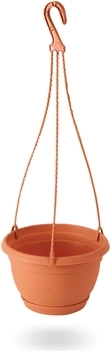 Breng een natuurlijke touch in je buitenruimte met deze stijlvolle hangende bloempot in de populaire tint terracotta. Dankzij de diameter van 270 mm en de inhoud van 3 l is hij ideaal voor het kweken van kruiden, hangplanten en seizoensbloemen. Het lage gewicht van 290 g maakt ophangen en hanteren eenvoudig.