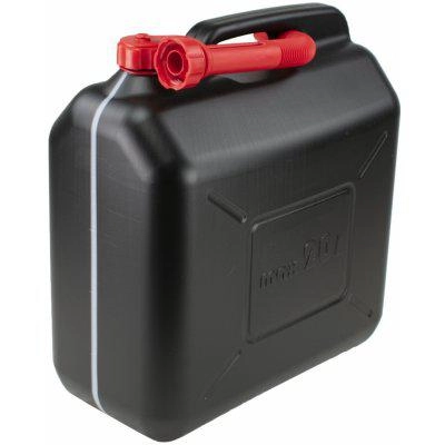 Betrouwbare zwarte jerrycan van robuuste kunststof, bedoeld voor reservebrandstof en andere vluchtige stoffen. Dankzij de doordachte afmetingen 420 × 350 × 200 mm past hij eenvoudig in de kofferbak en met een gewicht van slechts 1,1 kg is hij comfortabel te hanteren.