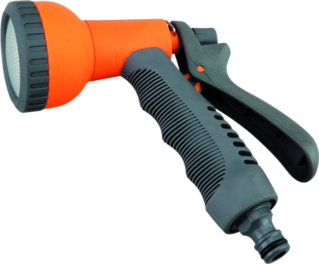De robuuste metalen uitvoering met verchroomd oppervlak is bestand tegen corrosie en slecht weer. De ergonomische vorm van het handvat zorgt voor een comfortabele en zekere grip, zelfs bij langdurig gebruik, terwijl de universele aansluiting een snelle koppeling met standaard tuinslangen garandeert.