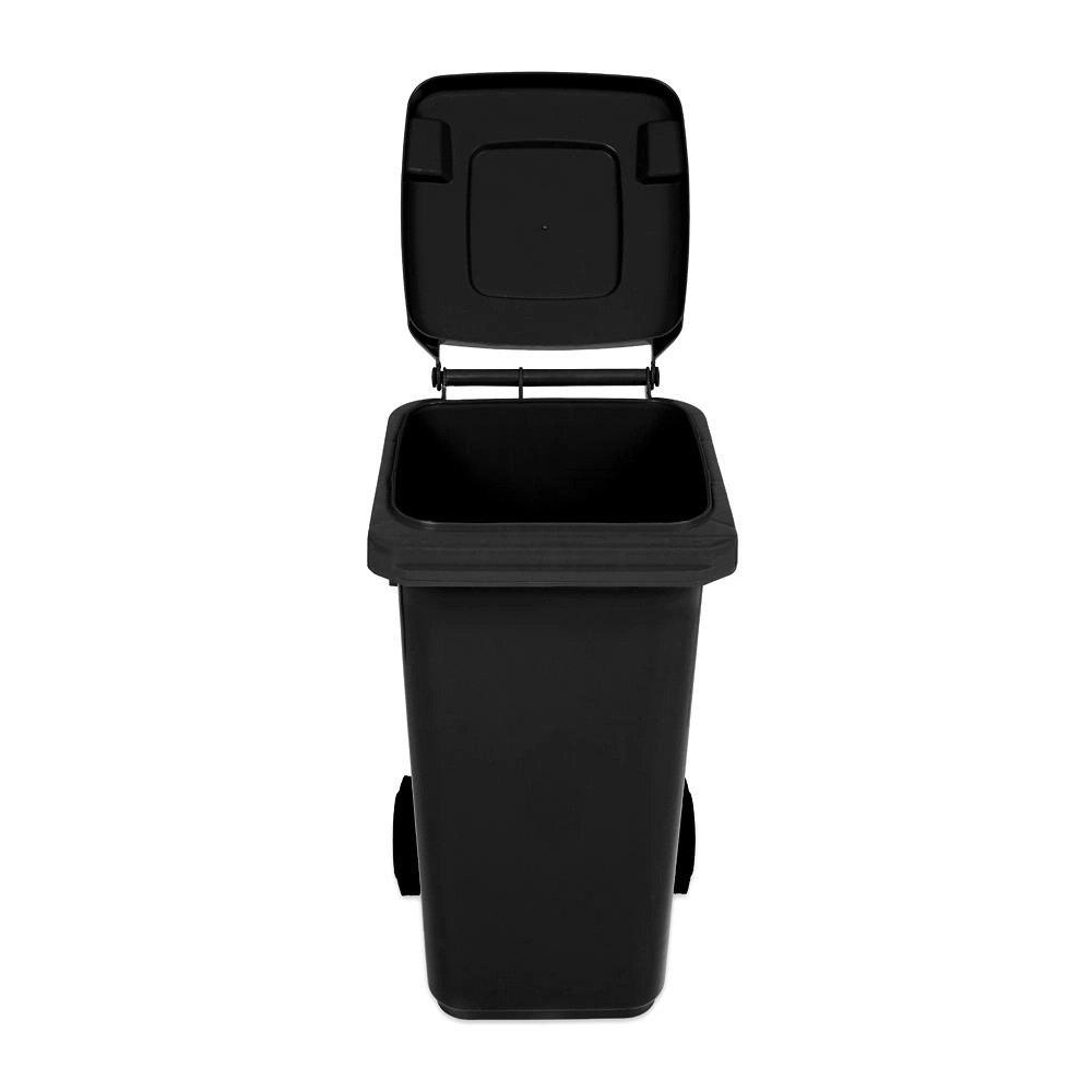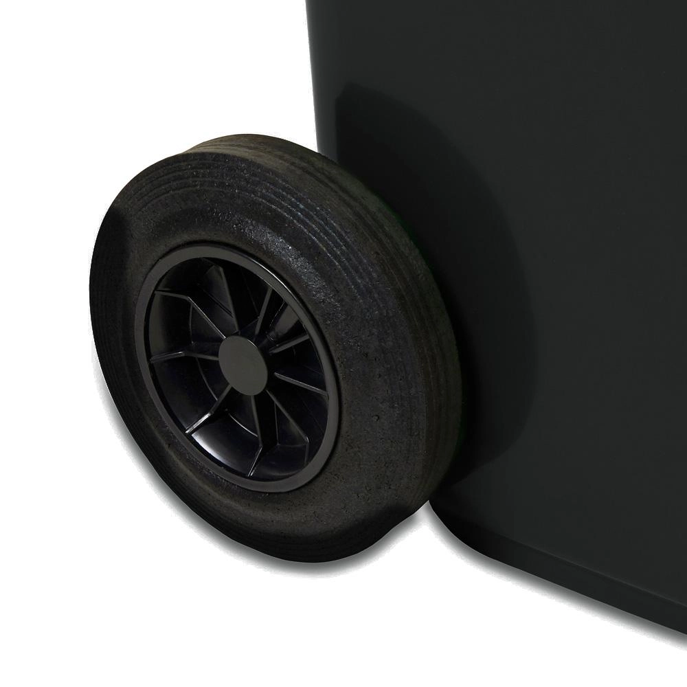 Deze zwarte kunststof afvalcontainer met een inhoud van 120 liter is een ideale keuze voor huishoudens, bedrijven en faciliteiten. Dankzij het lage gewicht, de ergonomische zijhandgrepen en de twee stevige wielen is de bak eenvoudig te verplaatsen, zelfs bij volle belading. De stevige deksel helpt geurhinder te beperken en voorkomt toegang van ongedierte.