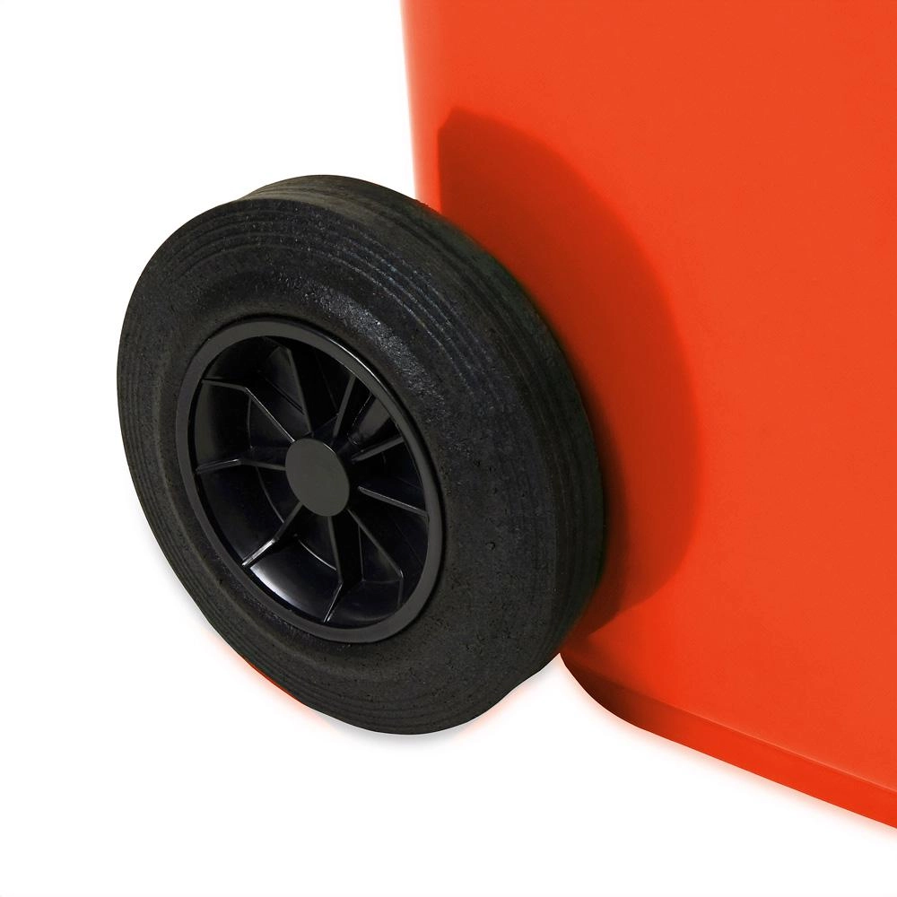 Dankzij de standaardafmetingen is de container compatibel met de meeste inzamelsystemen. Gladde binnenwanden vergemakkelijken het reinigen en zorgen voor een hoge hygiënestandaard. De rode uitvoering maakt eenvoudige kleurcodering van afval mogelijk volgens interne regels of gemeentelijke voorschriften.