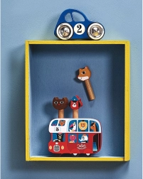 Het blauwe Vilac-autootje is gemaakt van gelakt hout, wat zorgt voor duurzaamheid en een elegante uitstraling. Het heeft metalen, met rubber beklede wielen die voor een soepele en stille rit zorgen. Dankzij het speciale asontwerp kan het autootje naar links en rechts sturen, wat het spel dynamischer maakt.