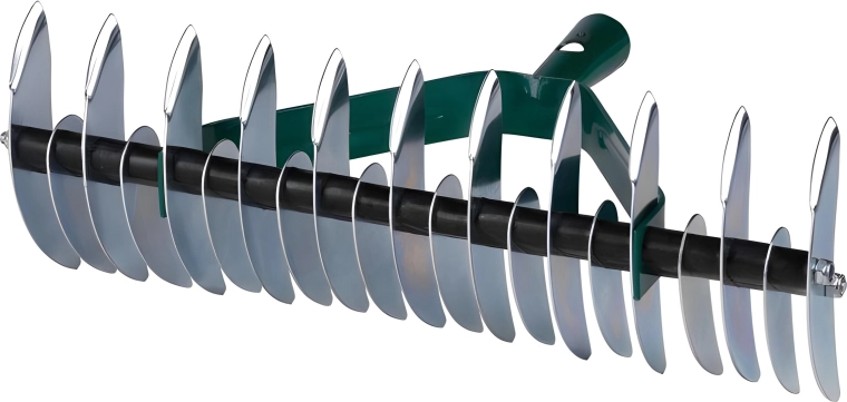 Het model wordt zonder steel geleverd, zodat je een handgreep naar eigen voorkeur kunt kiezen voor comfortabel gebruik. Regelmatig verticuteren met deze hark helpt bij de snellere regeneratie van het gazon na de winter, vermindert viltvorming en ondersteunt een egale groei.