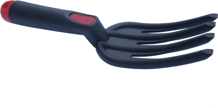 Lichte en duurzame kunststof tuinhandvork met vier tanden, ideaal voor planten, verplanten, bodem losmaken en onkruid verwijderen. Dankzij de ergonomische greep en weerbestendigheid zorgt hij voor comfortabel werken, ook bij langdurig gebruik.