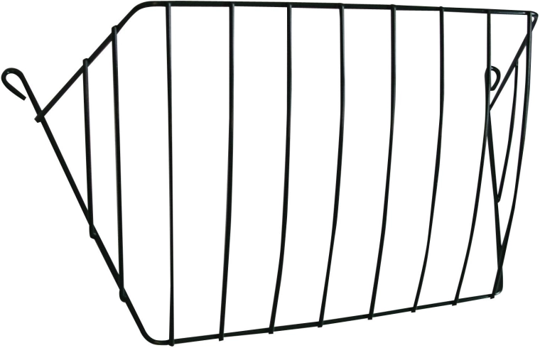 Zijogen voor snel ophangen aan muur of gaas. De ruif hangt stabiel en het hooi is altijd binnen handbereik.