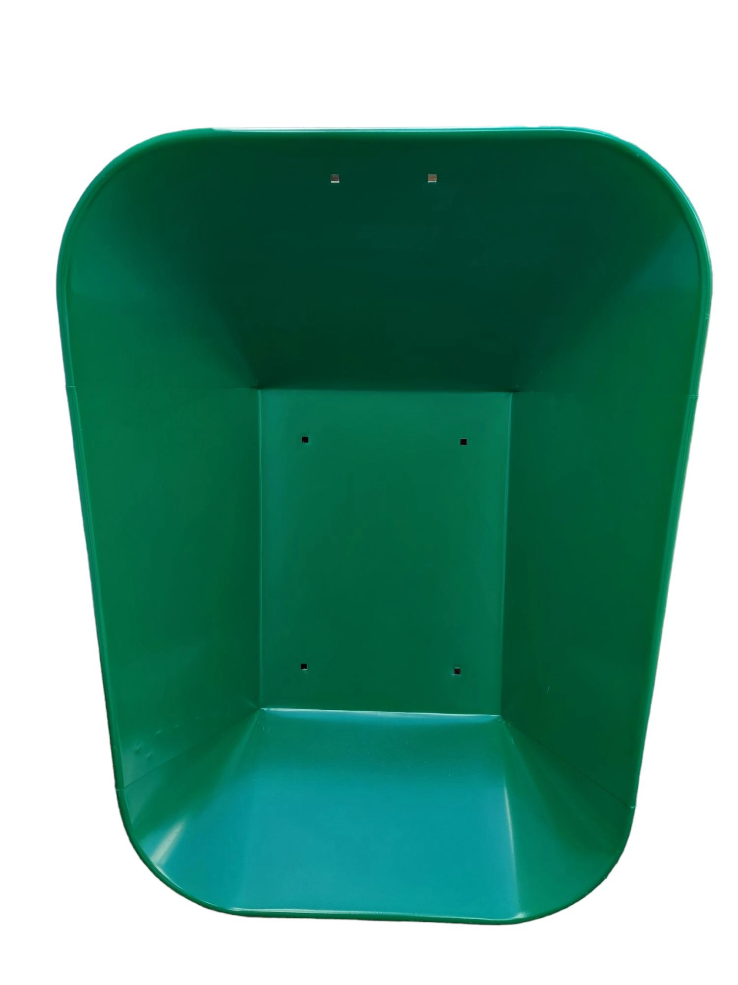 Vervangende bak voor een bouwkruiwagen met een inhoud van 60 l in groene kleur en duurzaam gestipt ontwerp. Ideaal voor bouwwerkzaamheden, tuin en werkplaats – biedt betrouwbare capaciteit en lange levensduur.