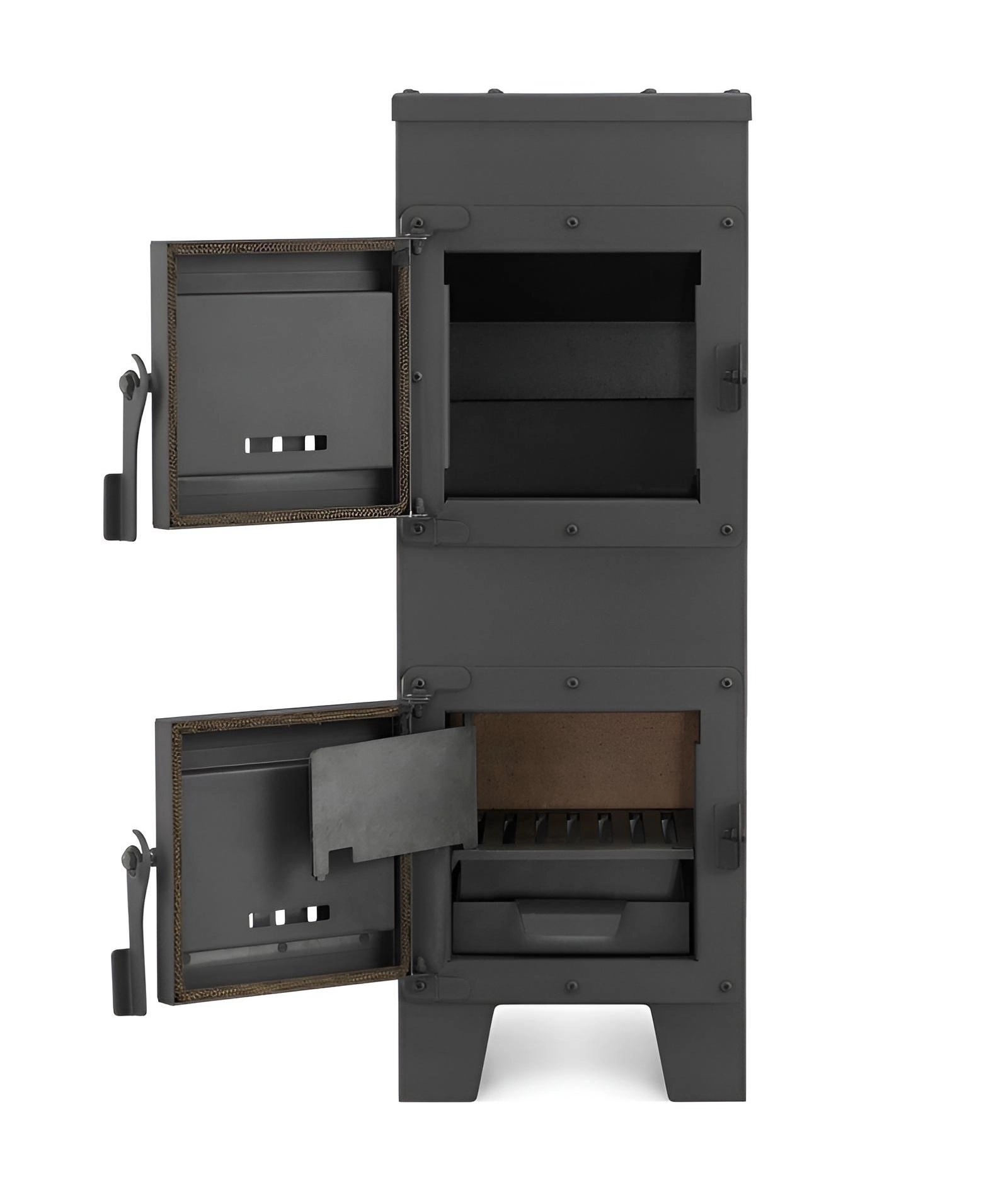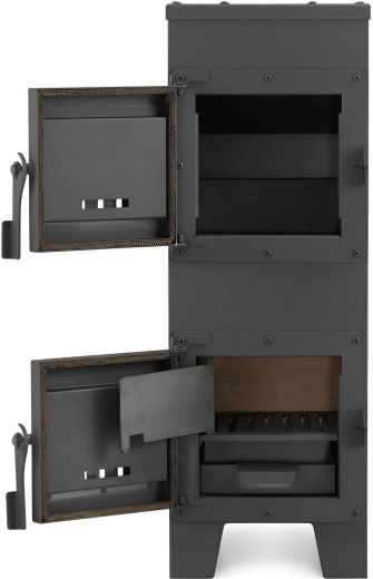 Het gietijzeren rooster en de uitschuifbare aslade maken snel onderhoud mogelijk zonder onnodige rommel.