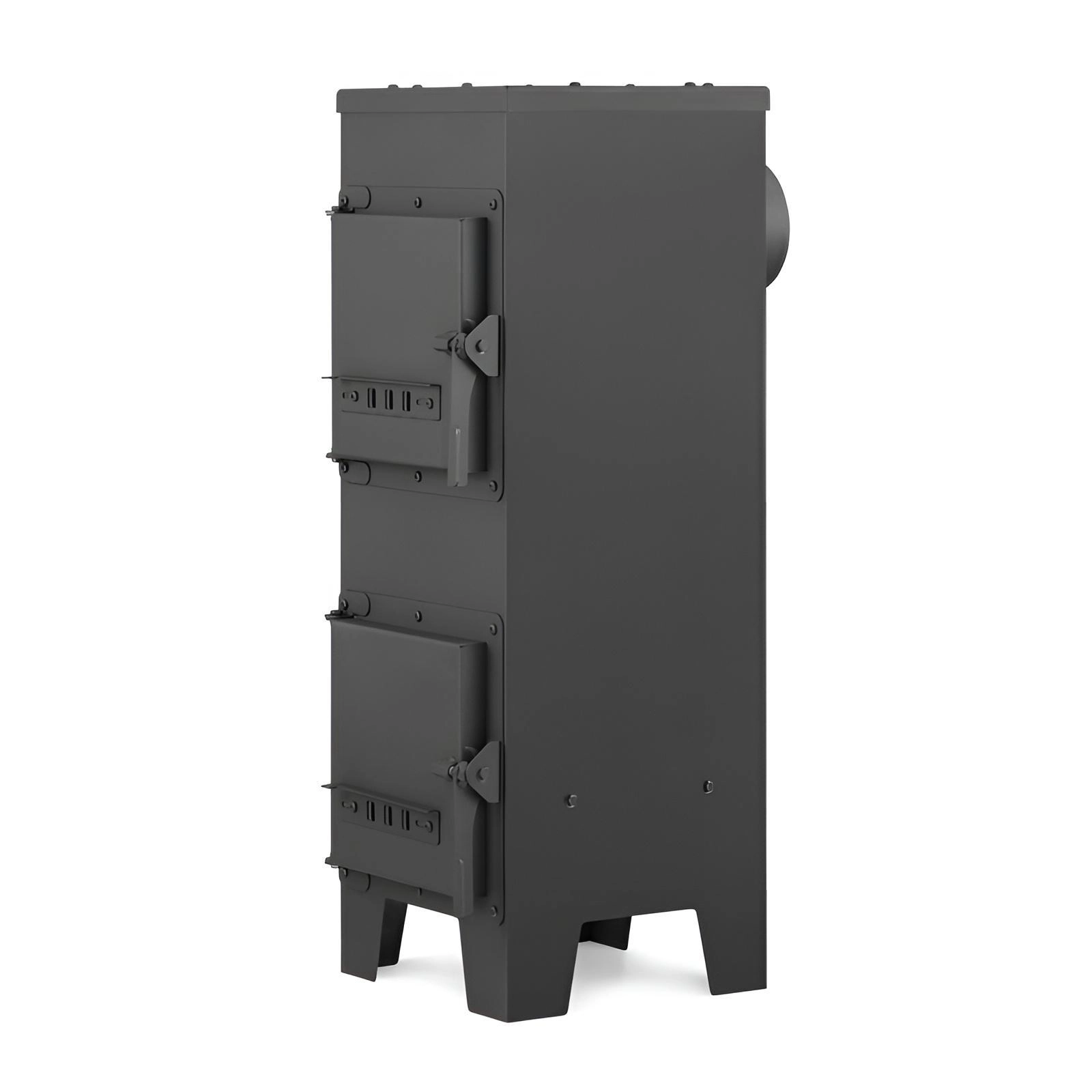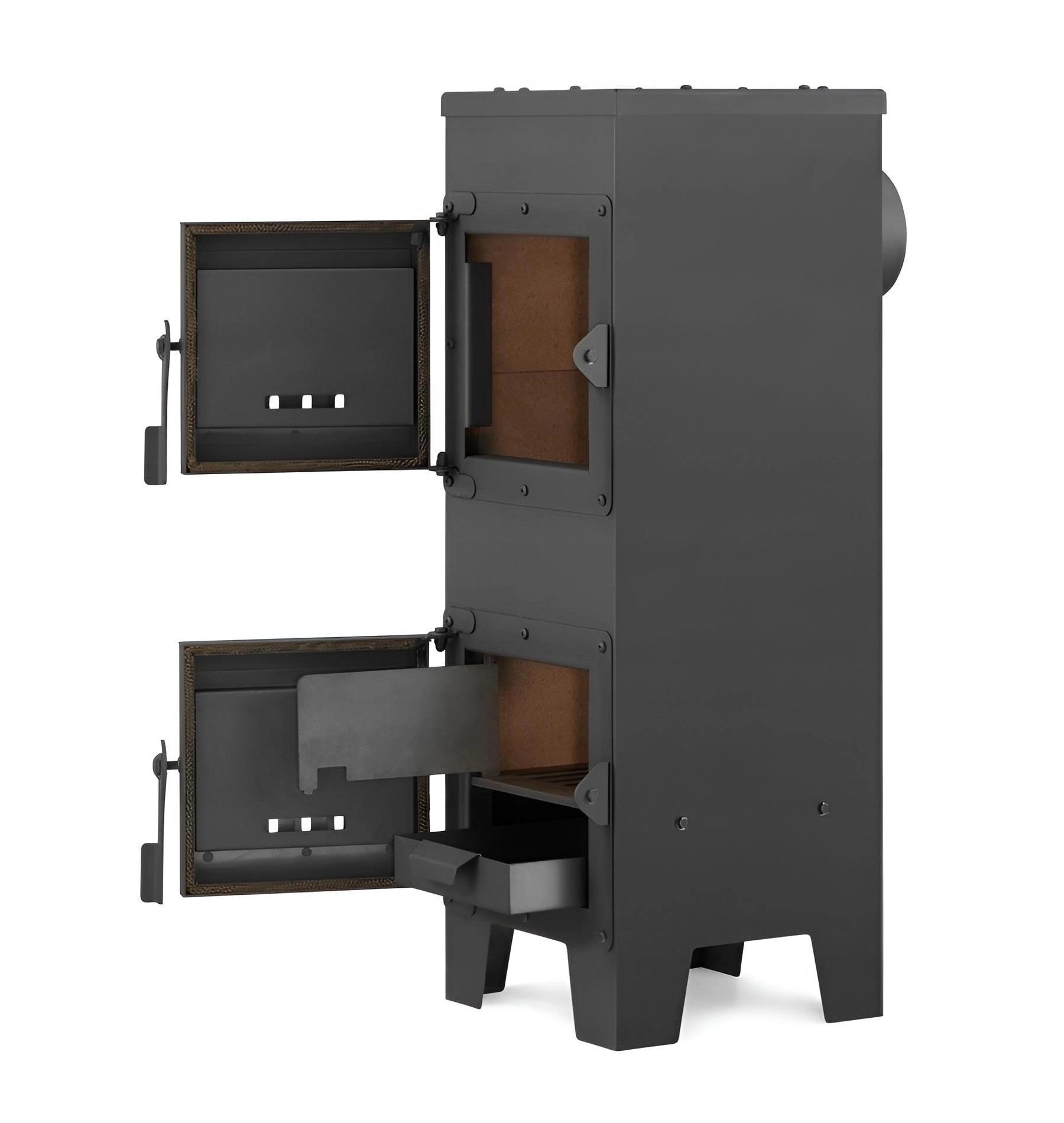 Deze vrijstaande kachel van hoogwaardig staal (2 mm) combineert compacte afmetingen met hoog rendement en betrouwbaarheid. Chamotte stenen op de bodem en zijwanden slaan warmte op en ondersteunen schonere en efficiëntere verbranding, terwijl de deflector en het systeem voor naverbranding helpen de energie uit de brandstof beter te benutten.