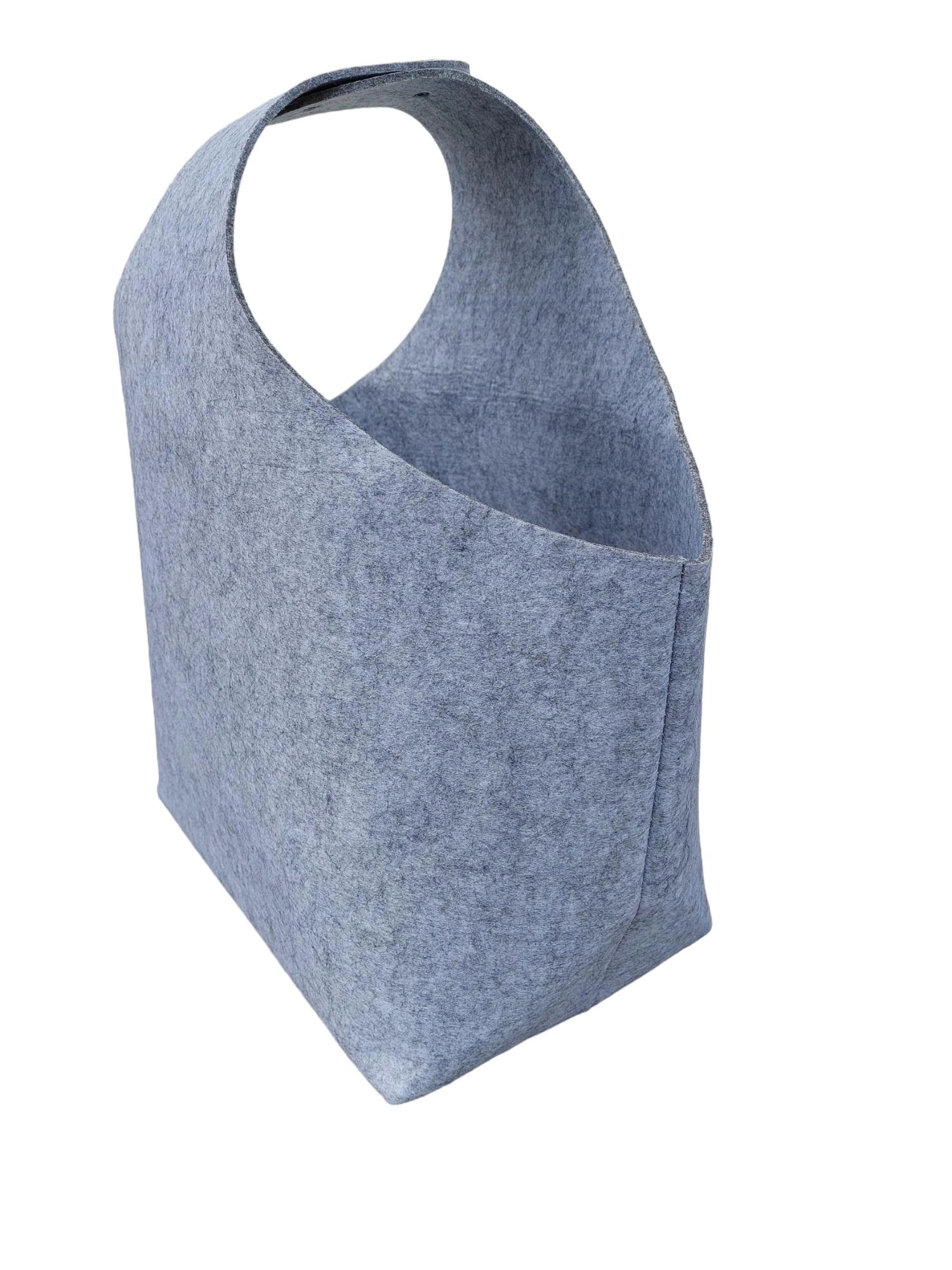 Stijlvolle vilten houtmand in lichtgrijs die een praktische en elegante oplossing biedt voor het opbergen van haardblokken bij de open haard. Dankzij de stevige vilten constructie met een materiaal­dikte van 4 mm is de mand duurzaam, stabiel en tegelijk licht te dragen. De compacte afmetingen 36 × 22 × 47 cm besparen ruimte en passen perfect in moderne interieurs.