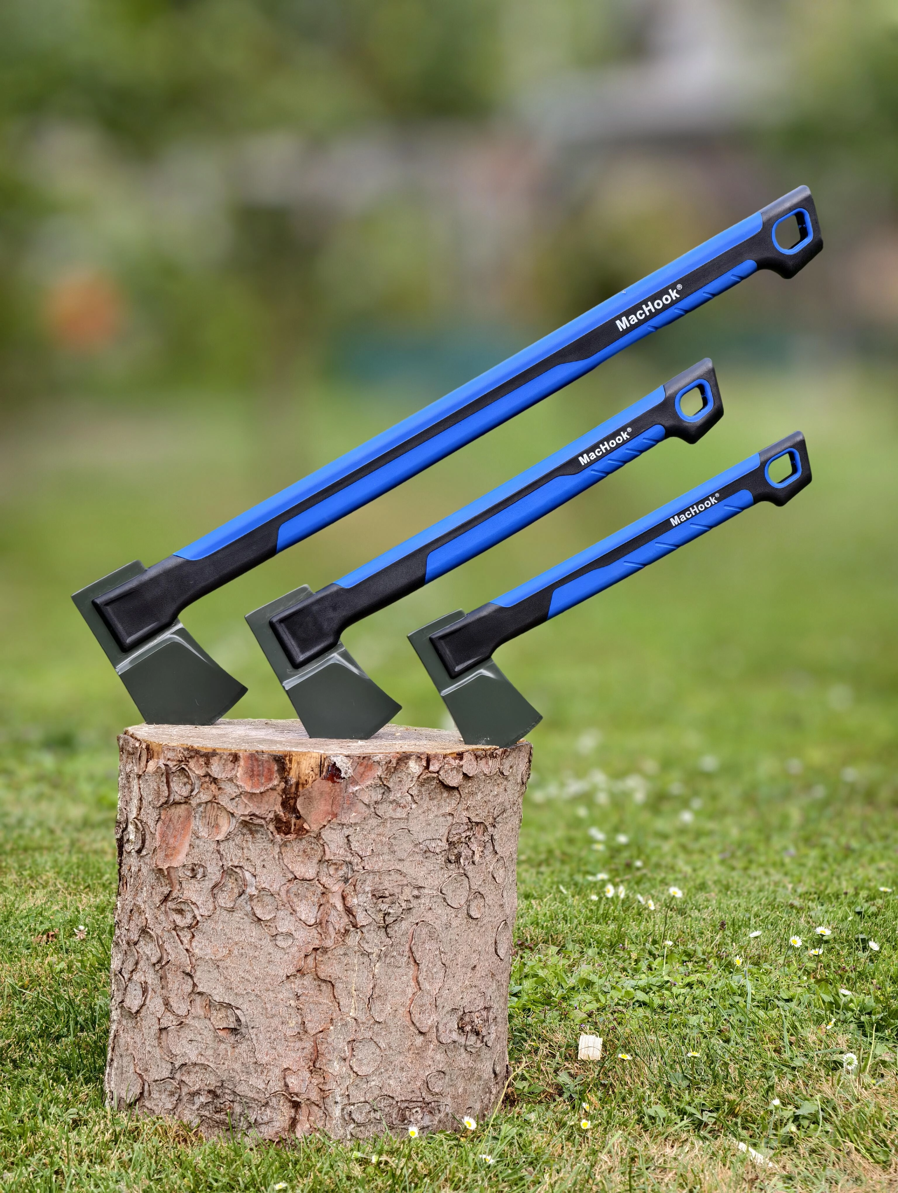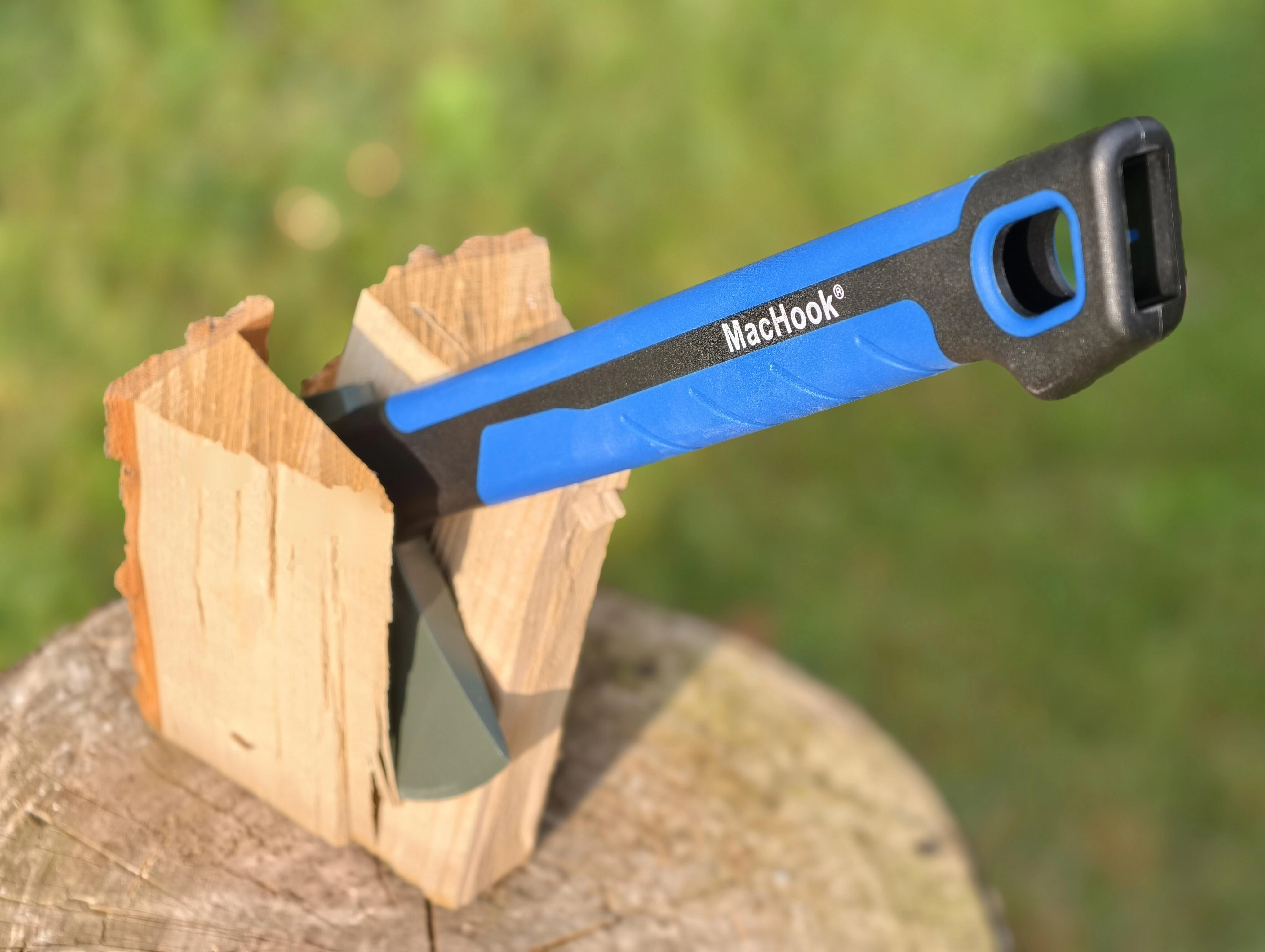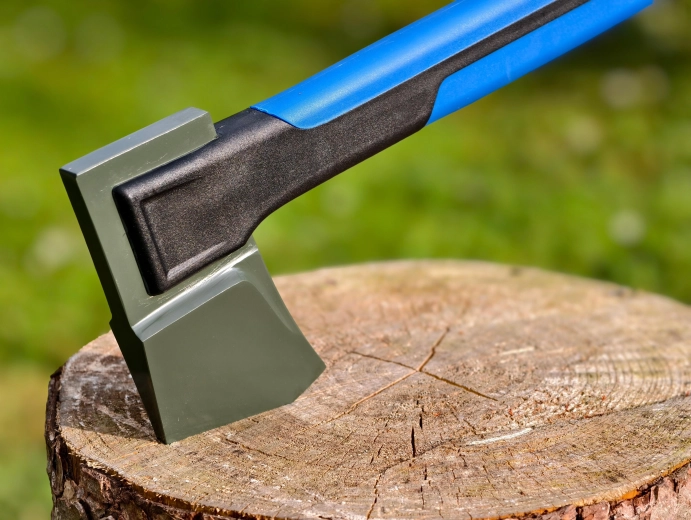 De stalen kop met wigvorm dringt gemakkelijk in het hout en helpt het werk bij de voorbereiding van brandhout te versnellen.