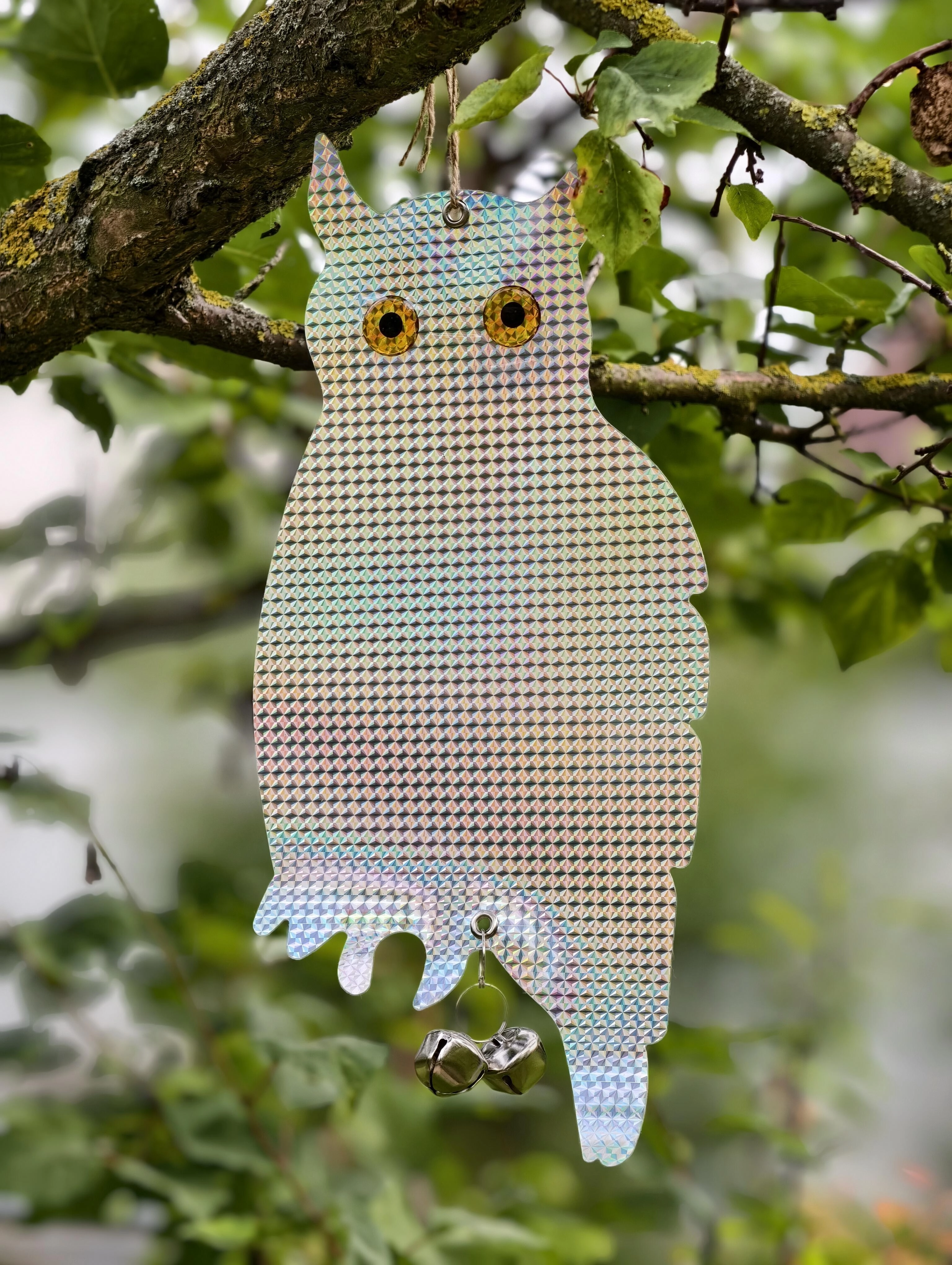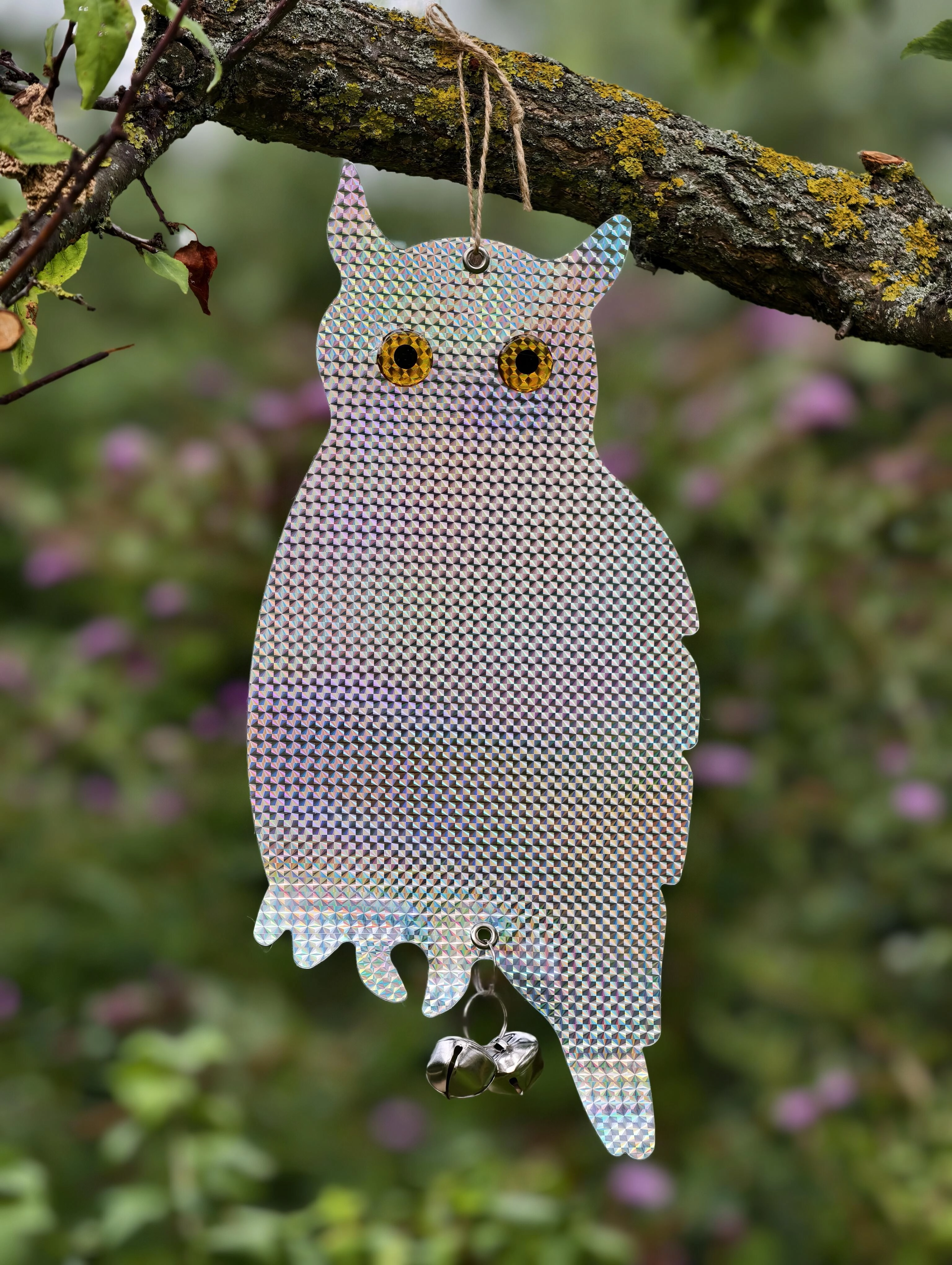 De reflecterende uilvormige verjagers combineren lichtreflecties, beweging en geluid om vogels te weren van zitten en schade aan de oogst te voorkomen. Het lichte en duurzame PET-materiaal met een dikte van 0,55 mm zorgt voor een lange levensduur en gemakkelijk gebruik. Elk stuk is klaar voor directe ophanging.