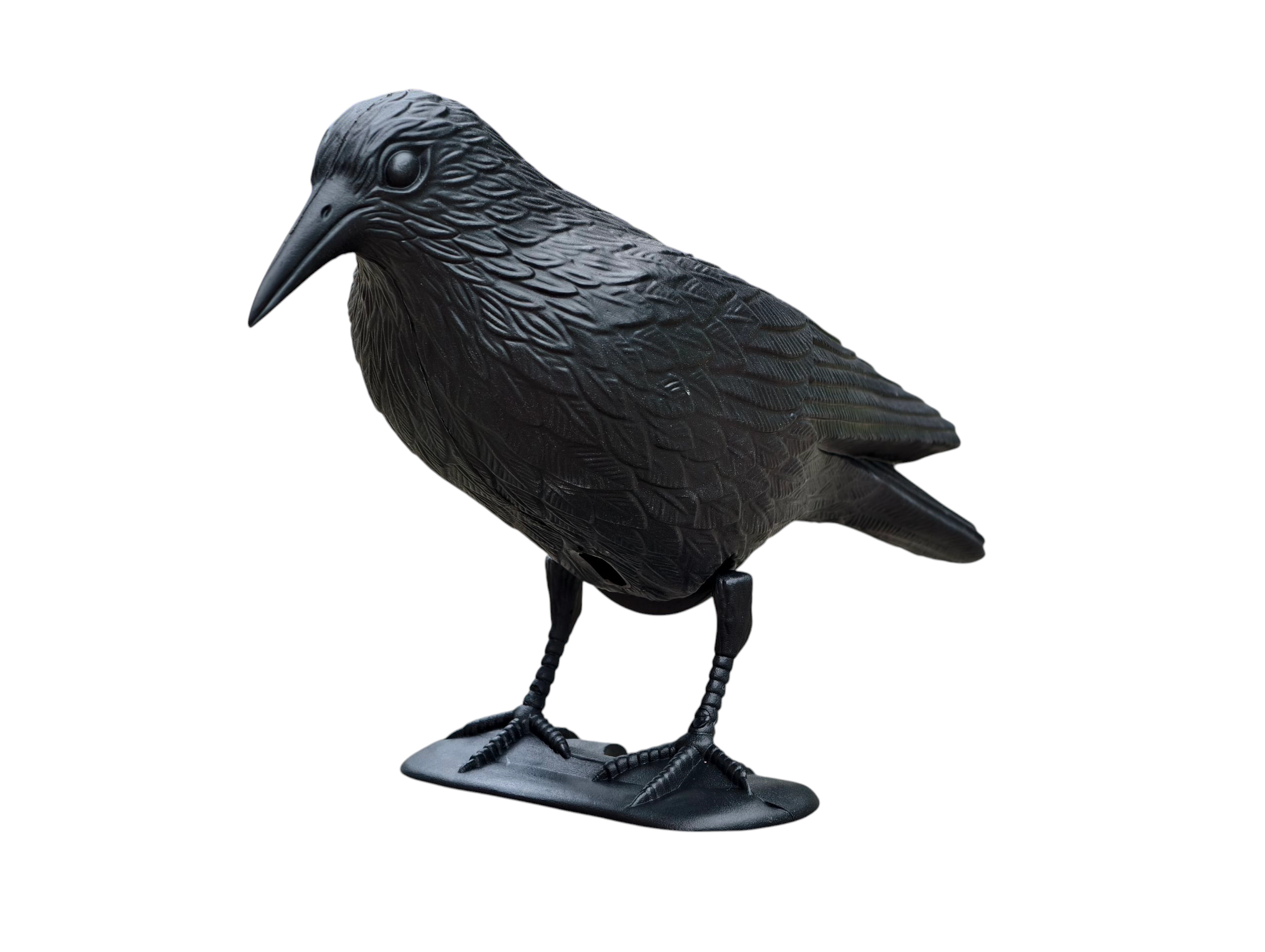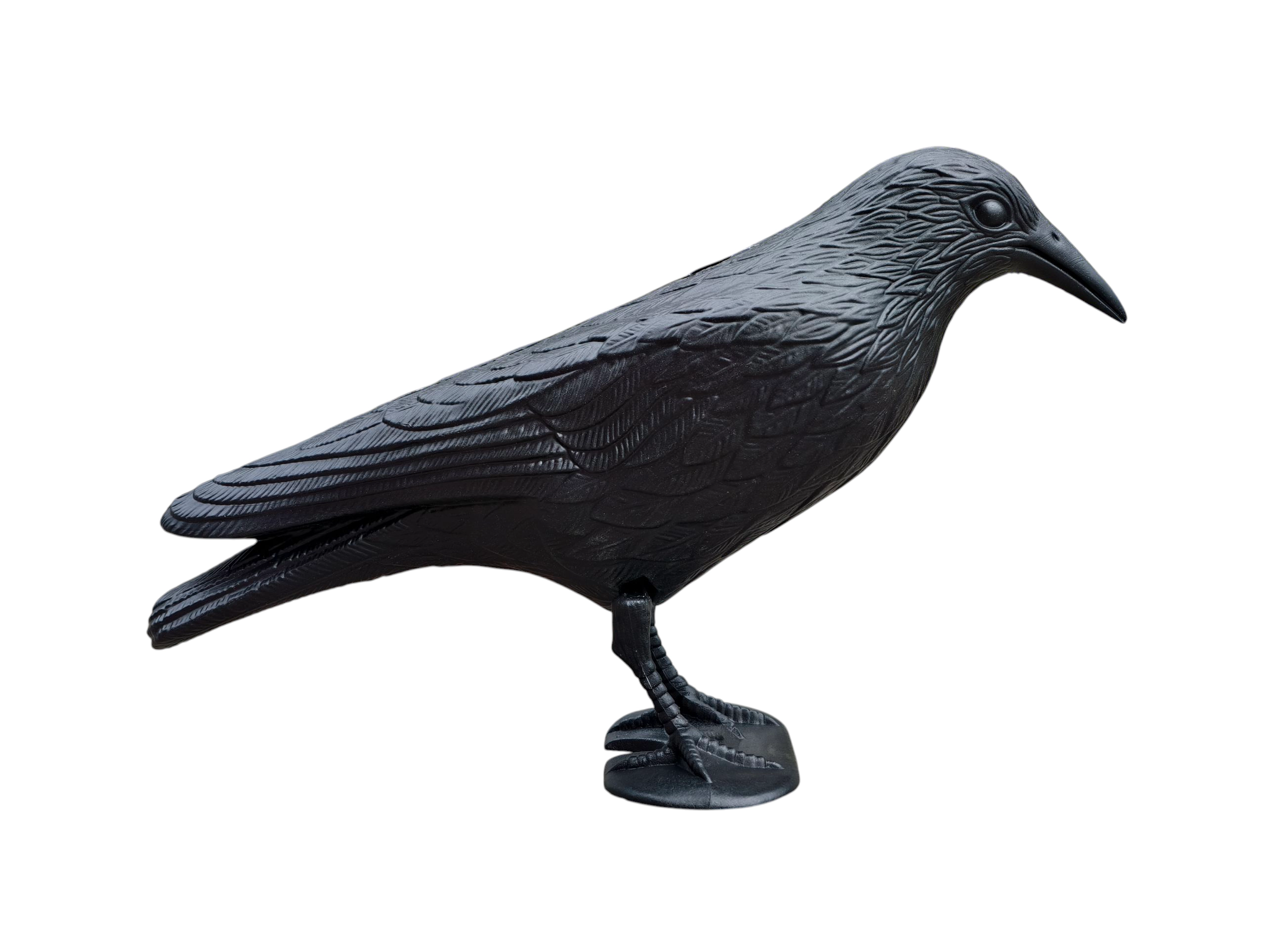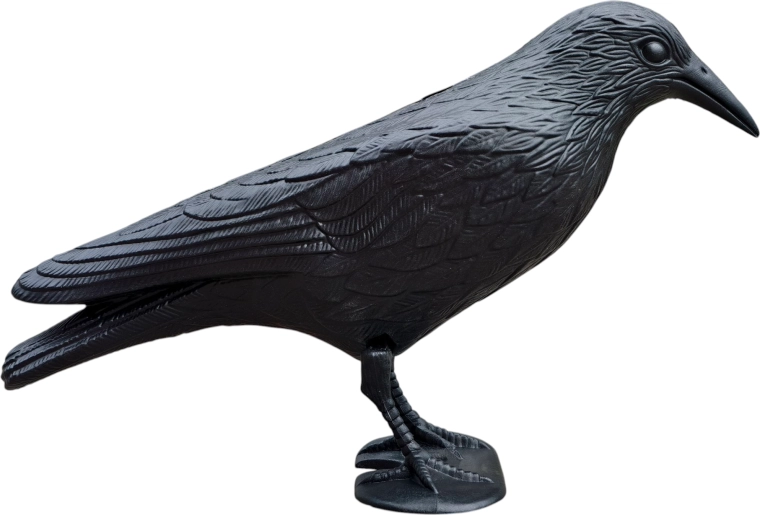 De gedetailleerde verentextuur en natuurlijke proporties bootsen een echte raaf na, wat het afschrikeffect op ongewenste vogels vergroot.