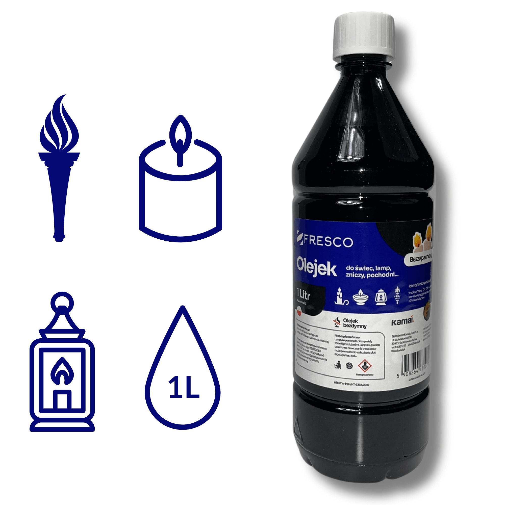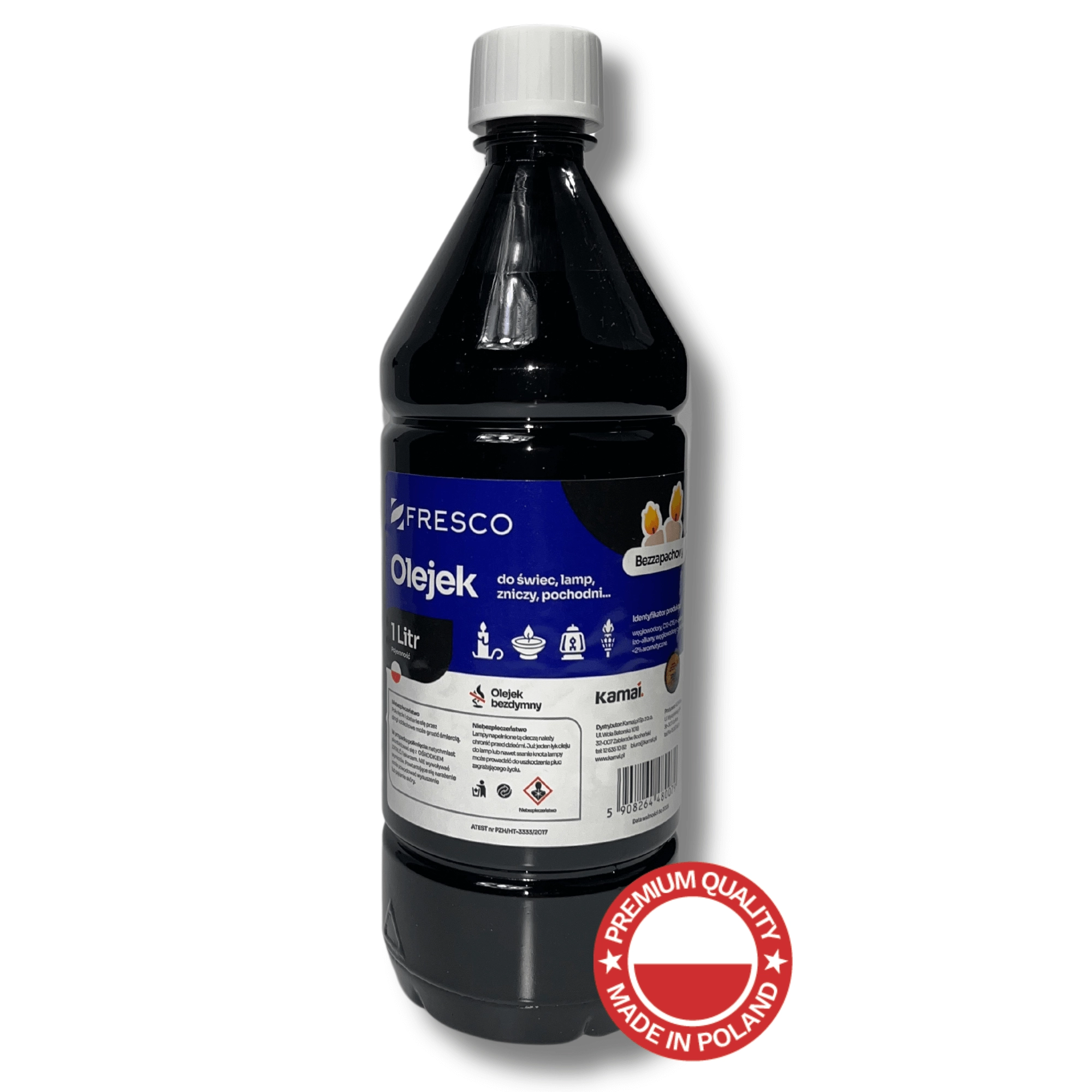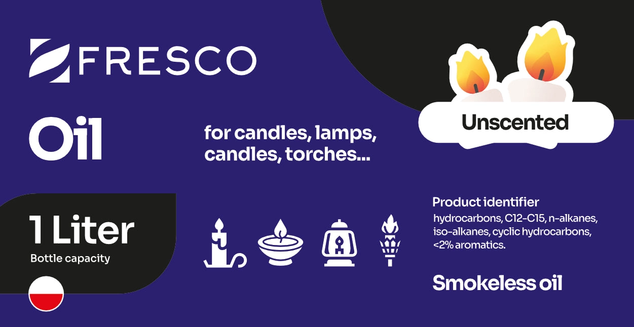 Hoogwaardige olie van Poolse makelij voor decoratieve en praktische verlichting. Ideaal voor tuin fakkels, tafelolielampen en kaarsen met lont. Dankzij de zuivere samenstelling is hij reukloos en zorgt hij voor een stabiele, rookvrije vlam, mits de lont correct is geplaatst en afgesteld.
