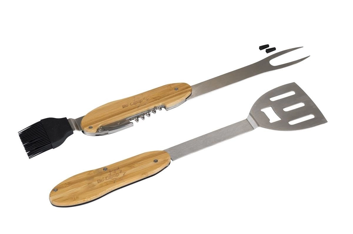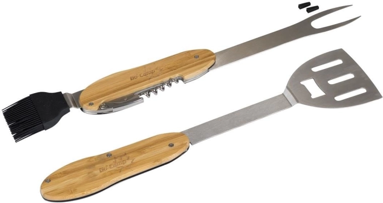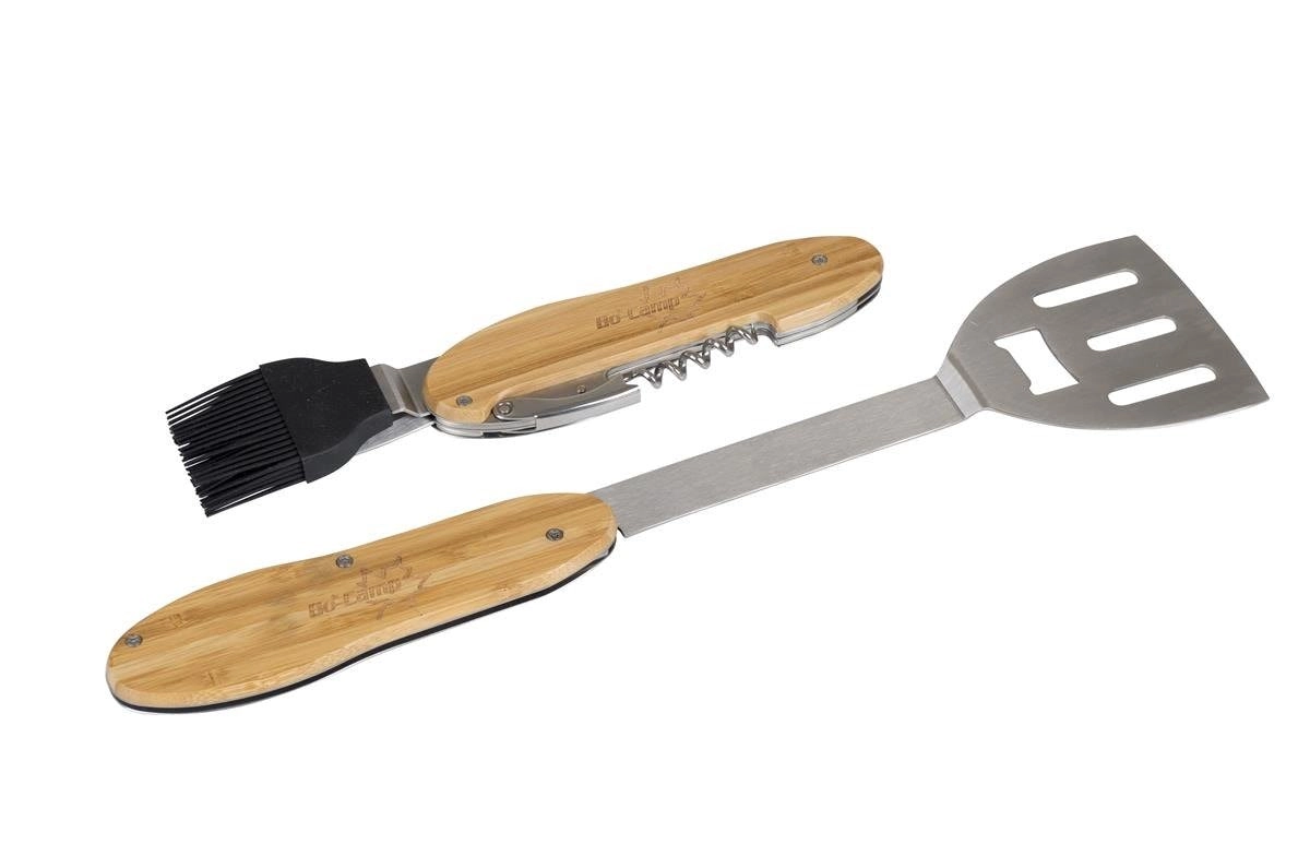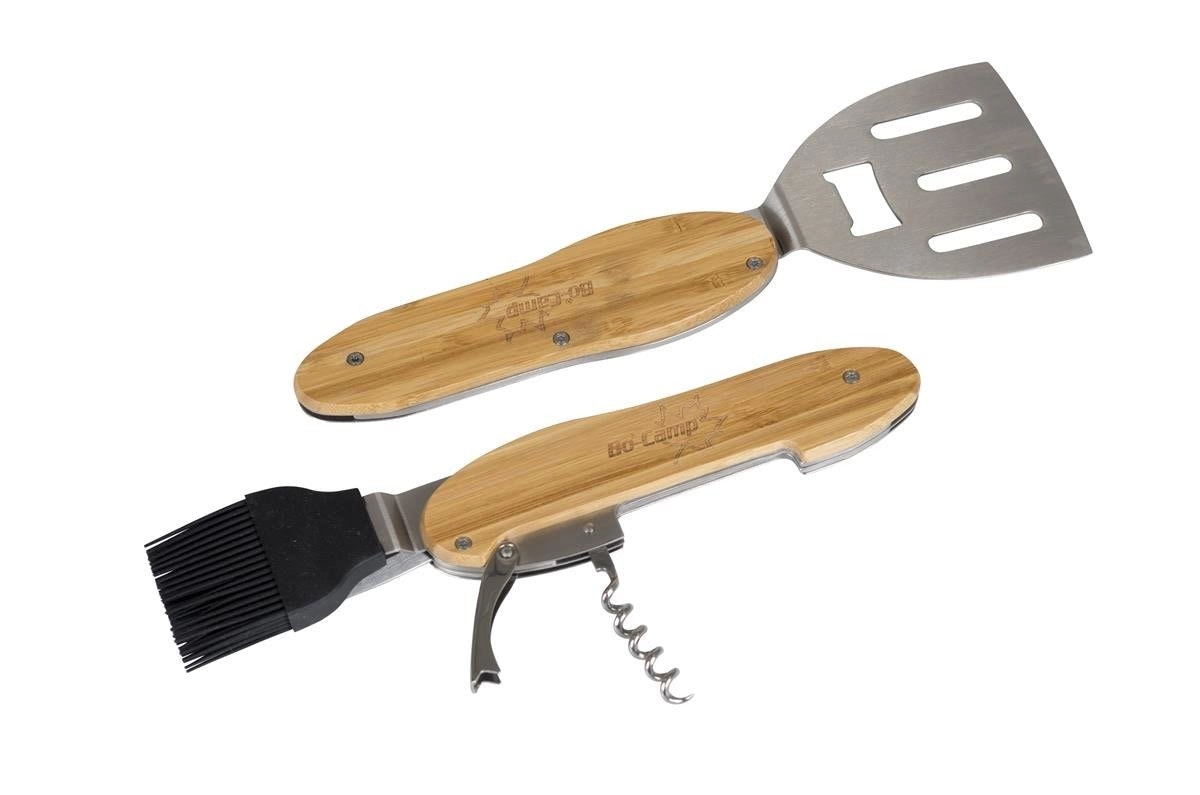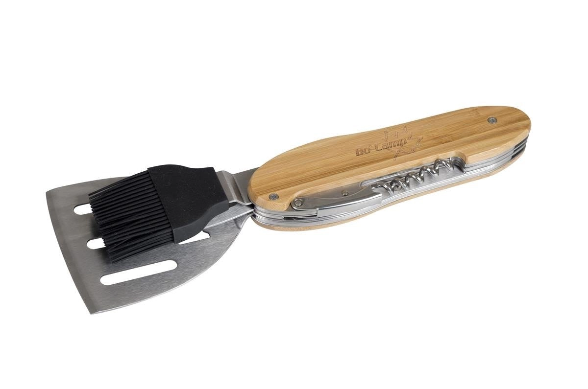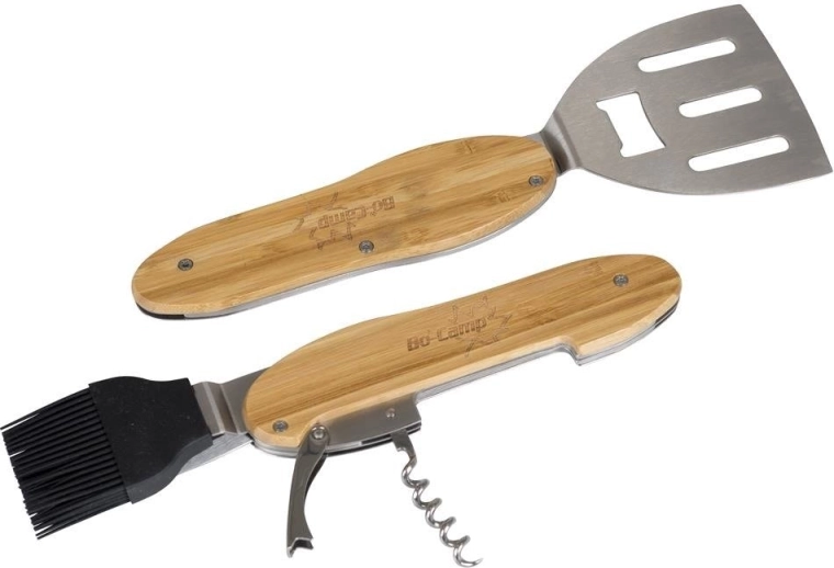 Spatel, vork, siliconen kwast, kurkentrekker en opener zijn slim geïntegreerd in één compact set. Perfect voor snel en georganiseerd grillen.