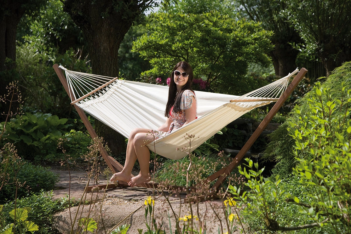 • Comfort en stabiliteit: de houten spreidstok houdt de hangmat open en vlak.