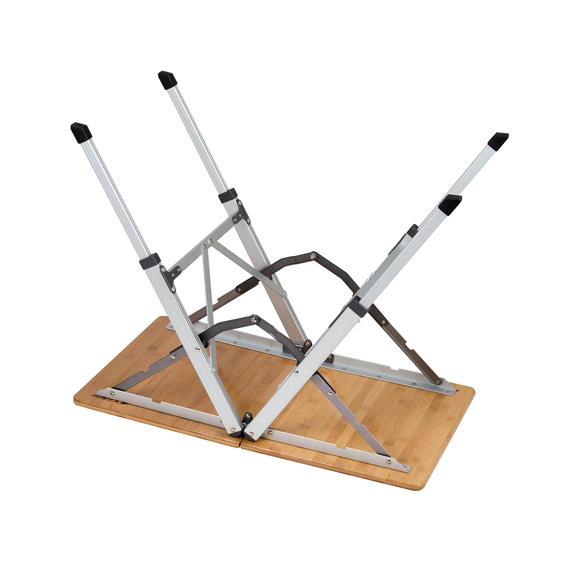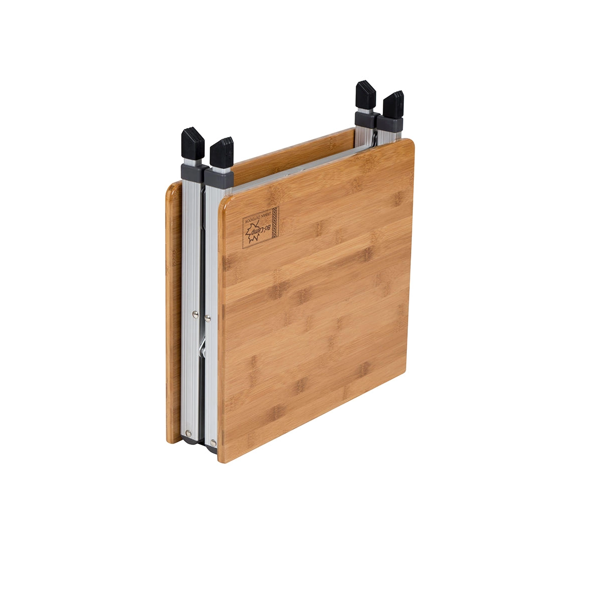 Elegante opvouwbare kampeertafel met bamboe tafelblad en lichtgewicht aluminium frame. Ideaal voor in de tuin, op de chalet of op de camping. Waterbestendige afwerking beschermt het blad tegen vocht, twee verstelbare hoogtes zorgen voor comfort bij zowel zitten als koken, en een stabiele aluminium constructie biedt zekerheid op verschillende ondergronden.