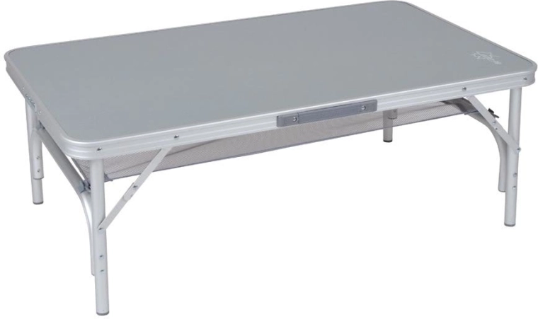 Lichte en duurzame kampeertafel van 100 × 60 cm met een waterdicht en hittebestendig blad, verstelbare hoogte van 36–70 cm en stabiele poten met fijnafstelling. Biedt eenvoudig transport dankzij het handvat, compact opvouwen en een praktisch hangnet voor kleine spullen. Maximale draagkracht 25 kg.
