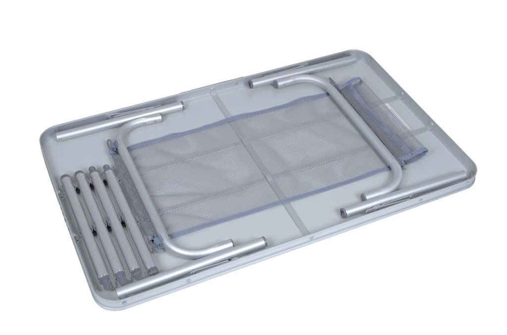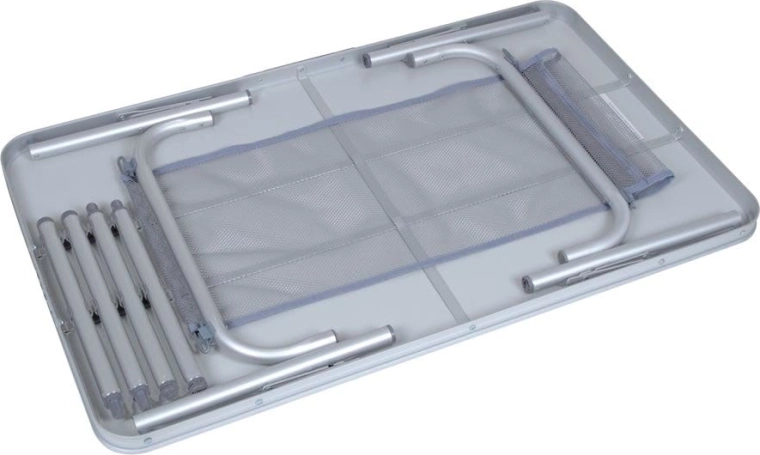 Met de nauwkeurige schroefverstelling stel je de hoogte eenvoudig in tussen 36–70 cm, en verstelbare poten zorgen voor stabiliteit, zelfs op ongelijke ondergrond. Inclusief hangnet onder het blad voor het praktisch opbergen van uitrusting. Na gebruik klap je de tafel eenvoudig in – afschroefbare poten en een slank profiel in opgevouwen toestand (100 × 60 × 3,5 cm) maken transport en opslag gemakkelijk. Een comfortabel draaghandvat ontbreekt niet.