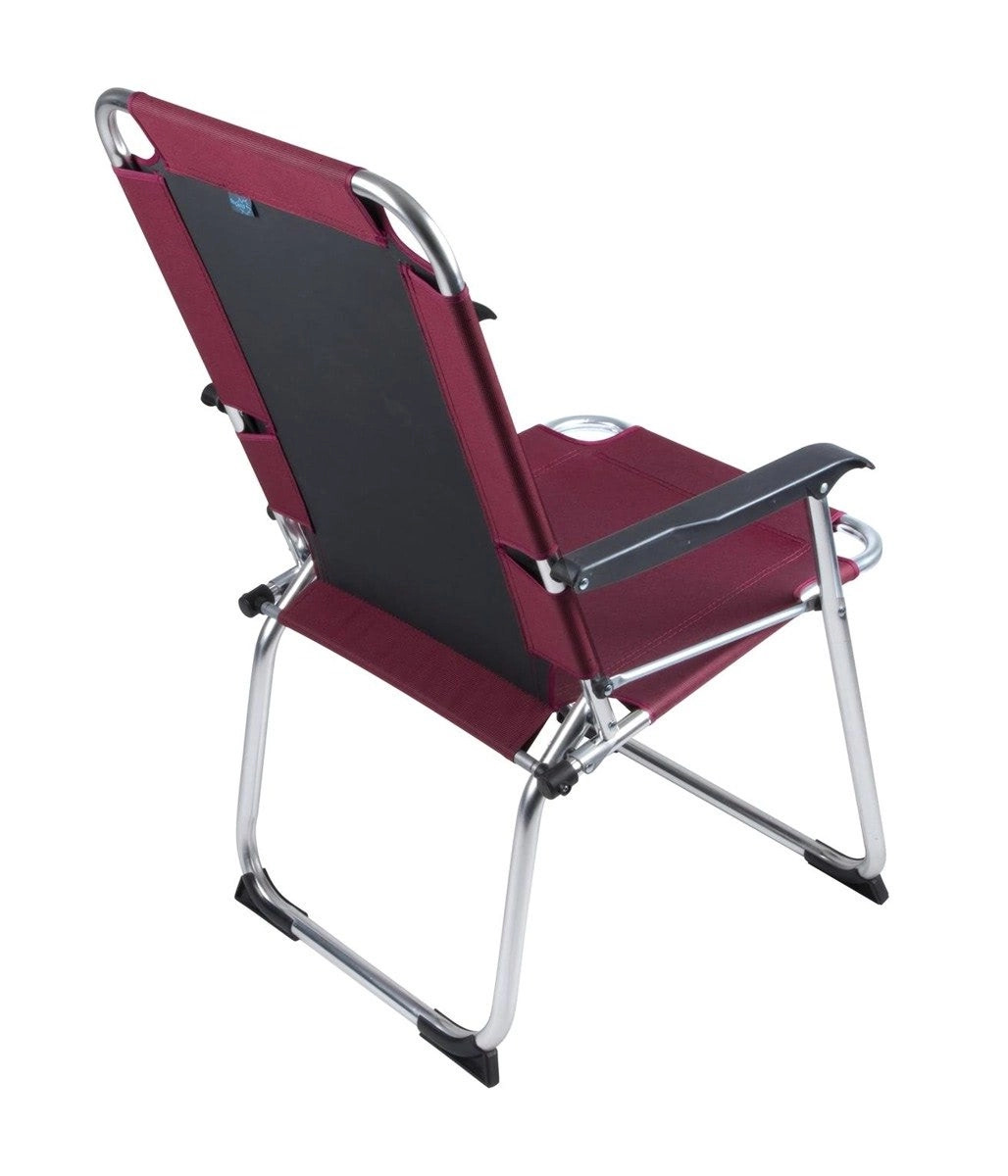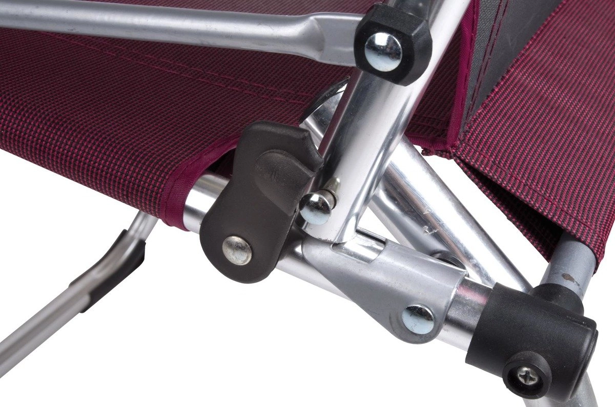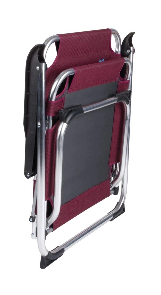 Met een gewicht van slechts 2,2 kg en afmetingen van 65 × 55 × 7 cm in opgevouwen staat is de stoel eenvoudig te vervoeren en op te bergen. De maximale draagkracht van 100 kg, een comfortabele zitting van 44 × 43 cm en een zithoogte van 40 cm zorgen voor comfort tijdens langdurig zitten. De elegante bordeaux kleur past perfect bij je outdooruitrusting.