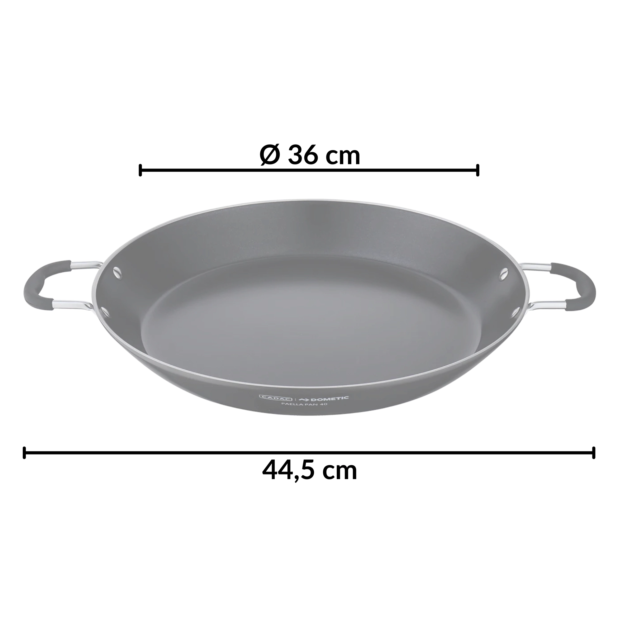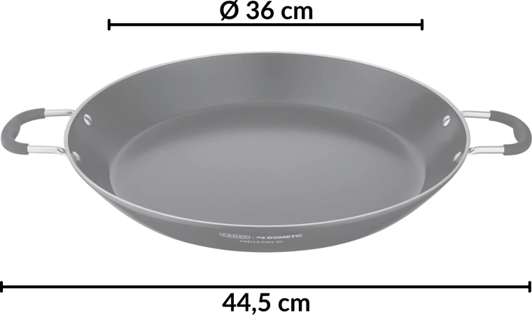 De CADAC PaellaPan 36 cm is ontworpen voor veelzijdig koken, thuis en buiten. De brede, ondiepe vorm zorgt voor gelijkmatige verhitting en perfect indampen van vloeistoffen – precies wat u nodig heeft voor authentieke paella of romige risotto. De antiaanbaklaag maakt koken met een minimum aan olie en snel reinigen na afloop eenvoudig.