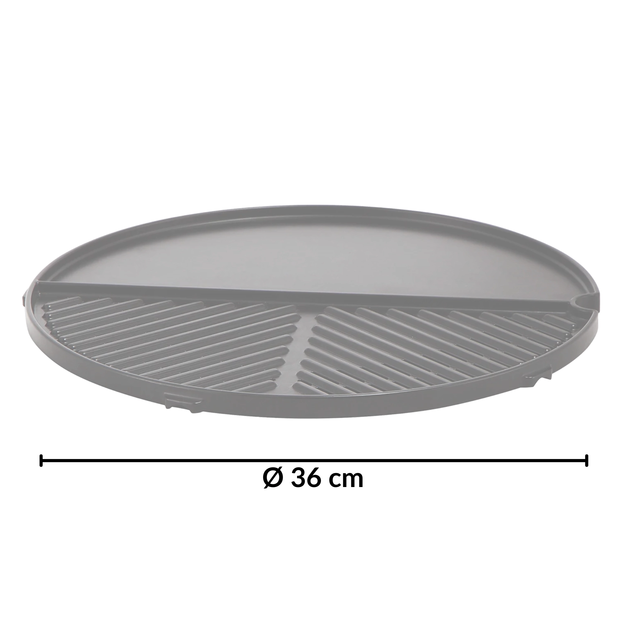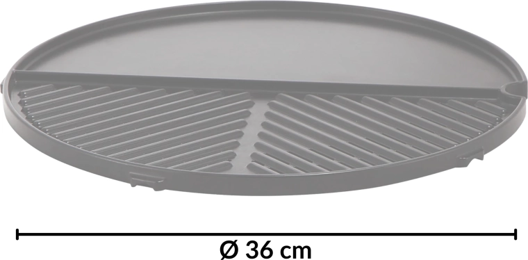 Universele grillplaat met een diameter van 36 cm met twee zones – de helft glad (plancha) en de helft geribbeld (grill). Lichtgewicht aluminium constructie met GreenGrill keramische coating zorgt voor snel opwarmen, uitstekende warmteverdeling en eenvoudig schoonmaken. Ideaal voor CADAC E-Braai, Citi Chef 40 en Carri Chef 40 – bereid vlees, groenten en eieren tegelijkertijd.