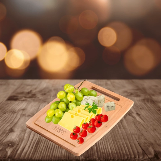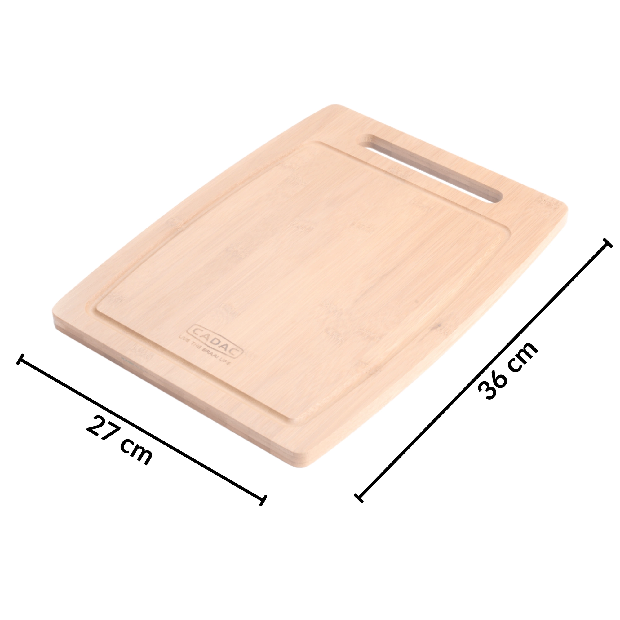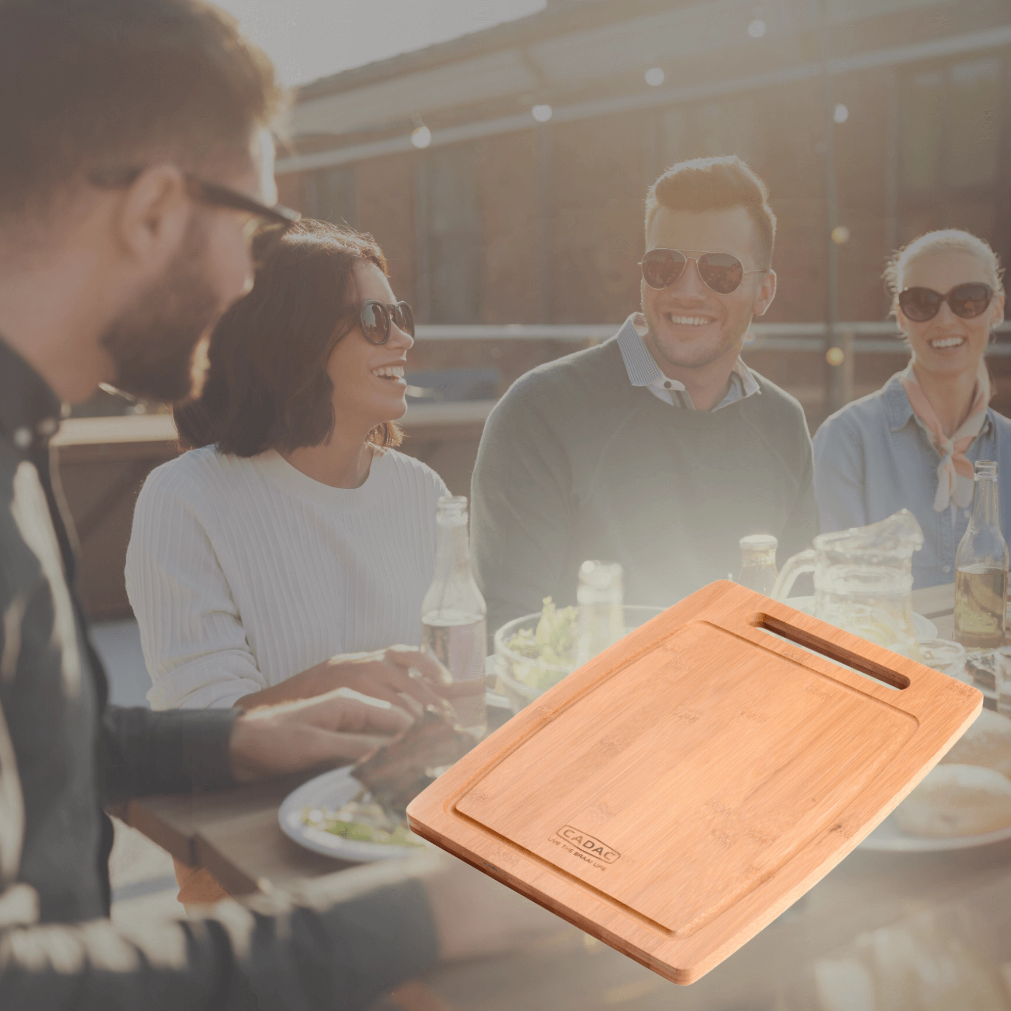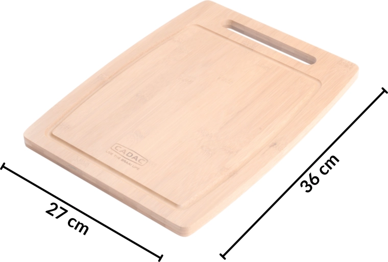 Ontdek de hoogwaardige bamboe snijplank van CADAC, die een modern uiterlijk, lange levensduur en milieuvriendelijkheid combineert. Bamboe groeit snel en is daarmee een duurzame keuze voor je keuken. Het gladde oppervlak is mesvriendelijk en biedt tegelijk hoge slijtvastheid.