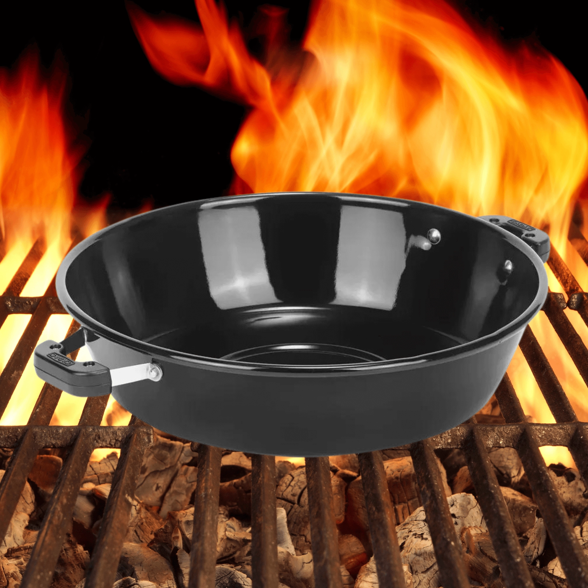 Diepe uitvoering van geëmailleerd aluminium is ideaal voor sauzen, soepen en bijgerechten – rechtstreeks op uw outdoor kooktoestel.