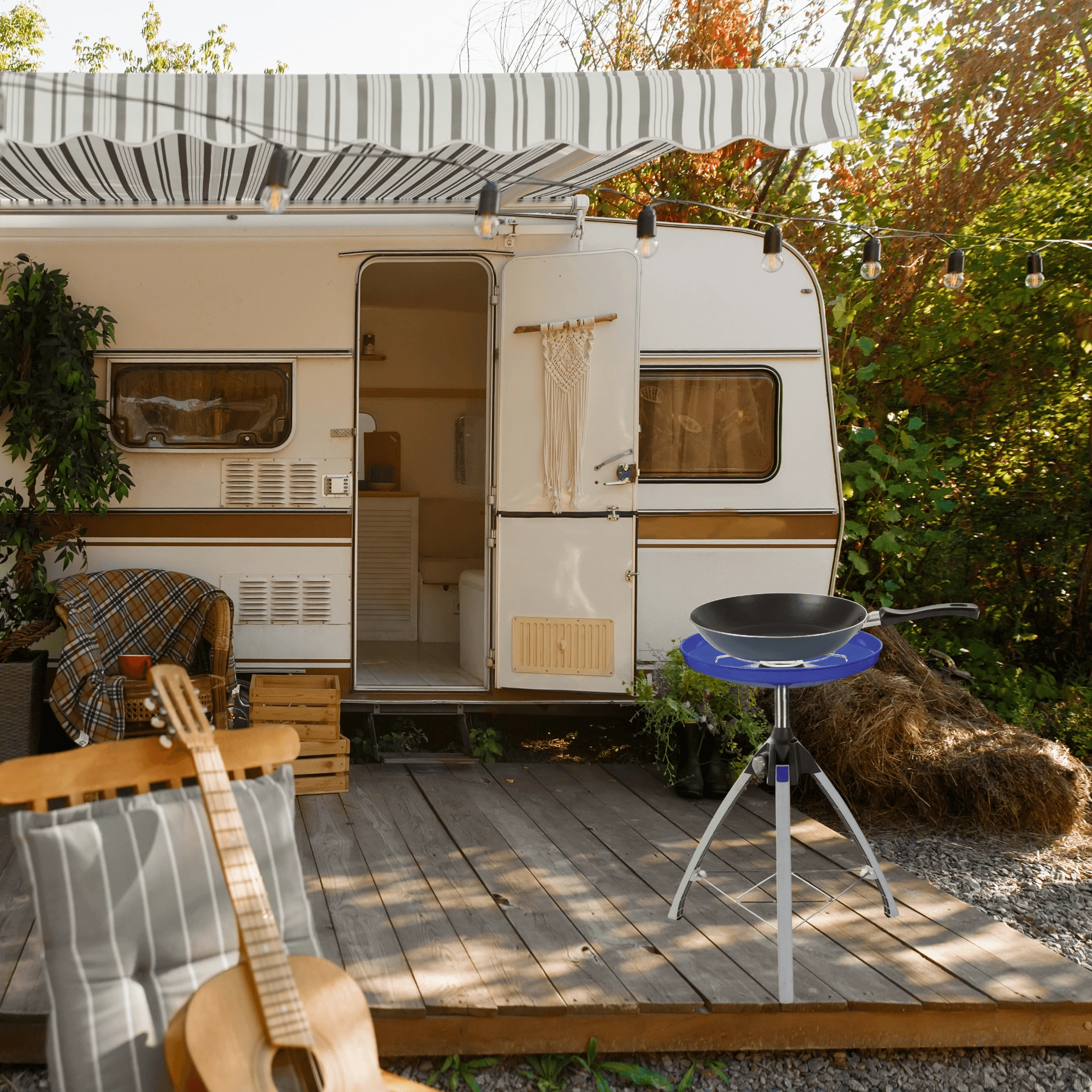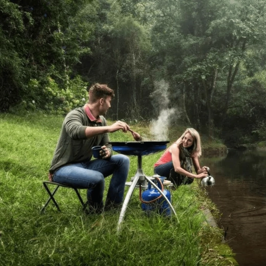 Lichte en stevige constructie die eenvoudig op te zetten is en zekerheid biedt bij het koken op de camping, in de tuin en aan het water.