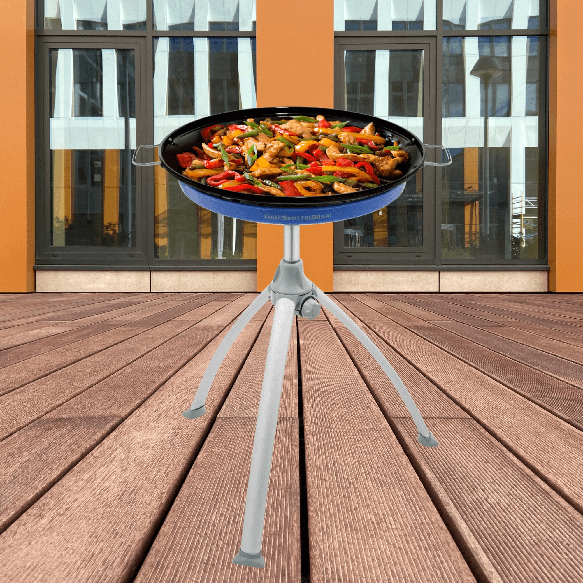 De CADAC Braai is een flexibele gasbarbecue voor snel koken in de buitenlucht. De multifunctionele plaat met antiaanbaklaag biedt een glad oppervlak voor eieren, pannenkoeken of groenten en een geribbeld oppervlak voor uitgesproken grillstrepen op vlees en vis. Dankzij de panstandaard maak je er in een handomdraai een klassiek kooktoestel van voor pannen tot ca. 30 cm.