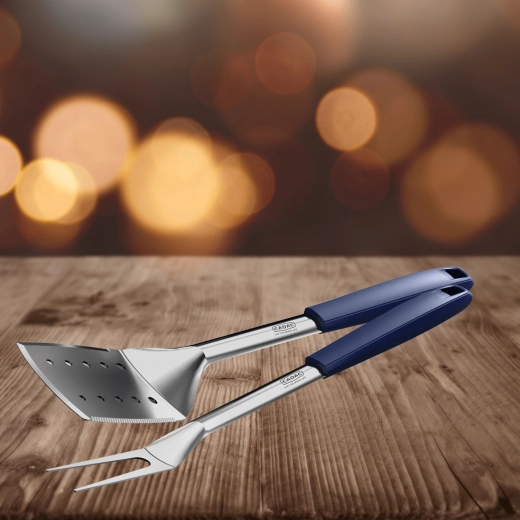 De spatel met bredere kop is ideaal voor het keren van steaks, vis of burgers; de vork maakt het prikken en overbrengen van vlees eenvoudig. Dankzij de duurzame constructie en doordachte ergonomie is deze set een uitstekende keuze voor barbecueën in de tuin en voor dagelijks koken.