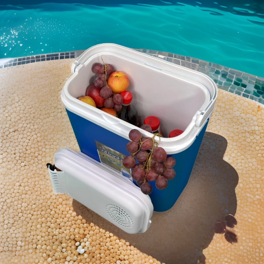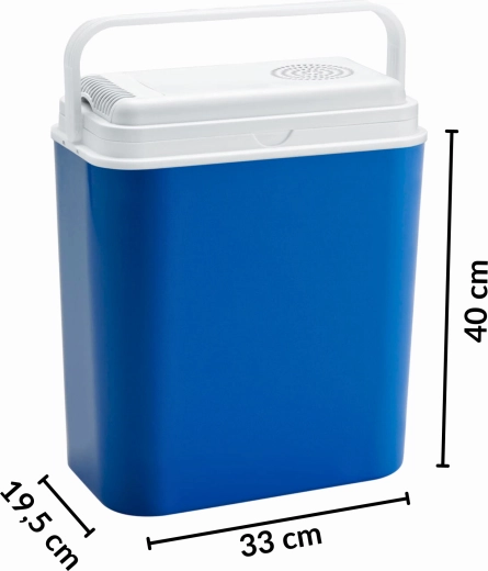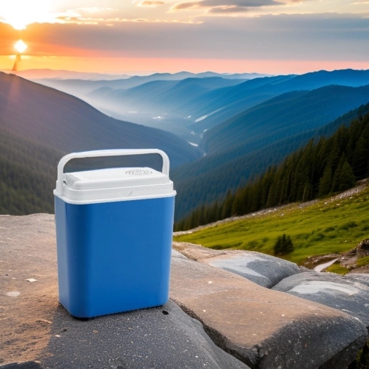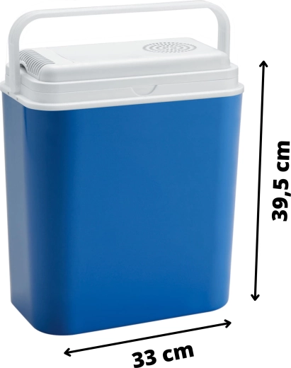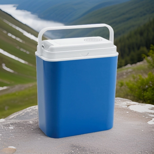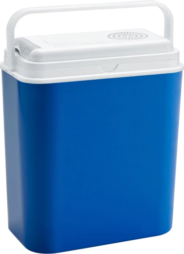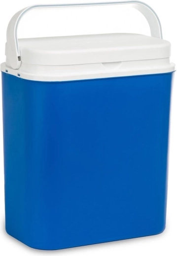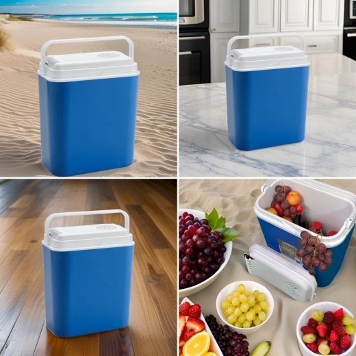 Het model is in Europa vervaardigd, voldoet aan strenge normen voor contact met levensmiddelen en dankzij de lichte en robuuste uitvoering van polypropyleen is het onderhoud en dagelijks gebruik eenvoudig. De elegante blauwe behuizing met wit deksel past perfect bij picknick, strand en camping.