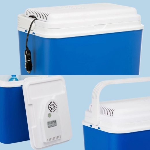 Compacte elektrische auto-koelbox met een inhoud van 24 l voor voeding via de 12V-autostekker, ideaal voor op reis, kamperen en picknicks. Dankzij het thermo-elektrische Peltier-element houdt hij betrouwbaar een lage temperatuur aan zonder schadelijke chemicaliën, en de hoogwaardige isolatie houdt de inhoud koel, zelfs na het loskoppelen van de stroom. Een praktische inklapbare draaggreep, stevige constructie en eenvoudig onderhoud maken hem tot een geweldige metgezel voor elk avontuur.