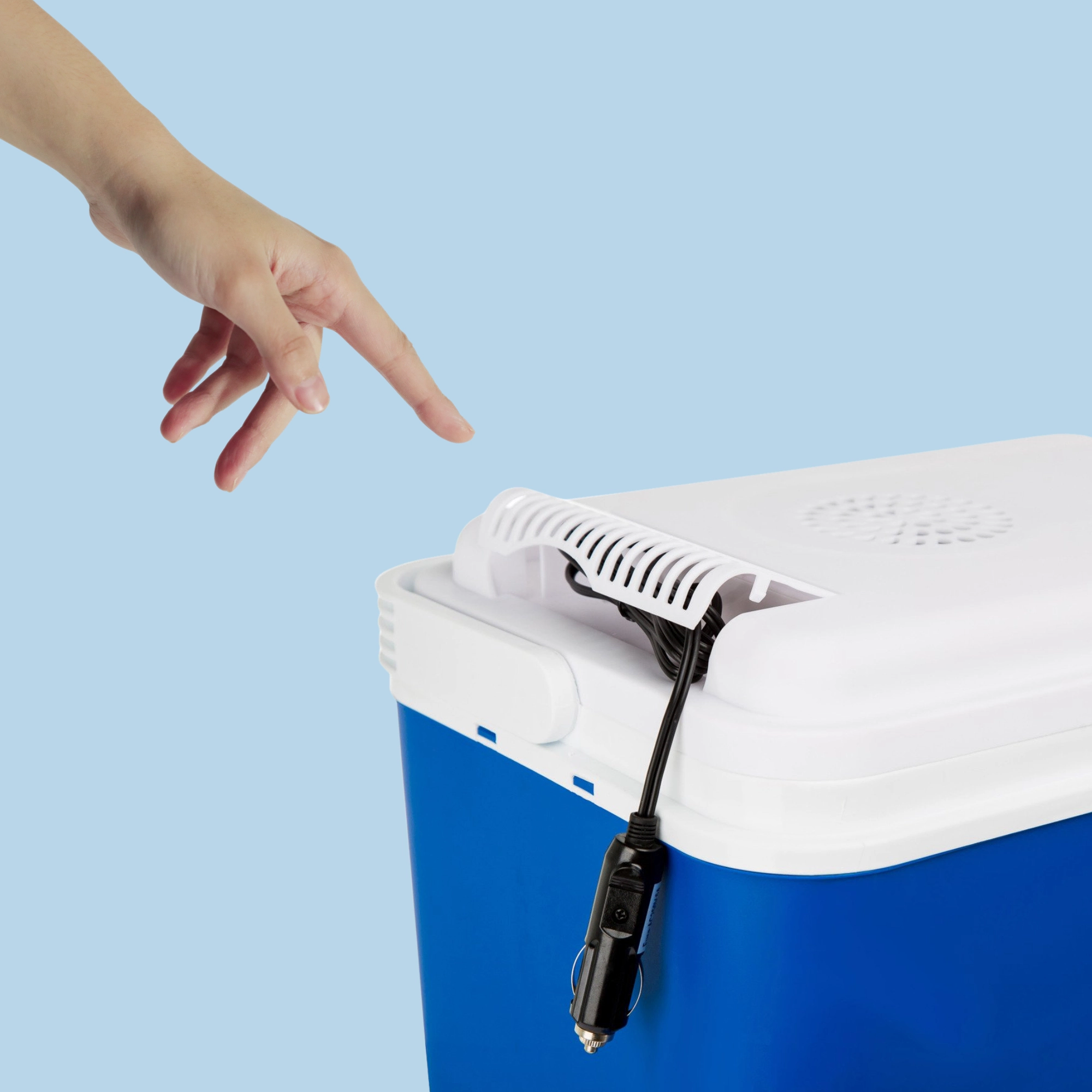 Sluit eenvoudig aan op de sigarettenaansteker. De kabel kan direct in het deksel worden opgeborgen, zodat u alles altijd bij de hand hebt.