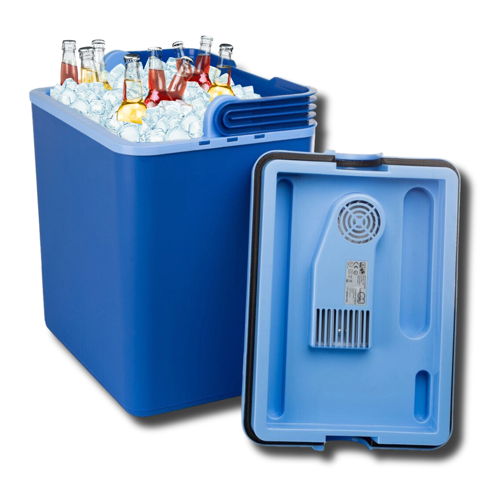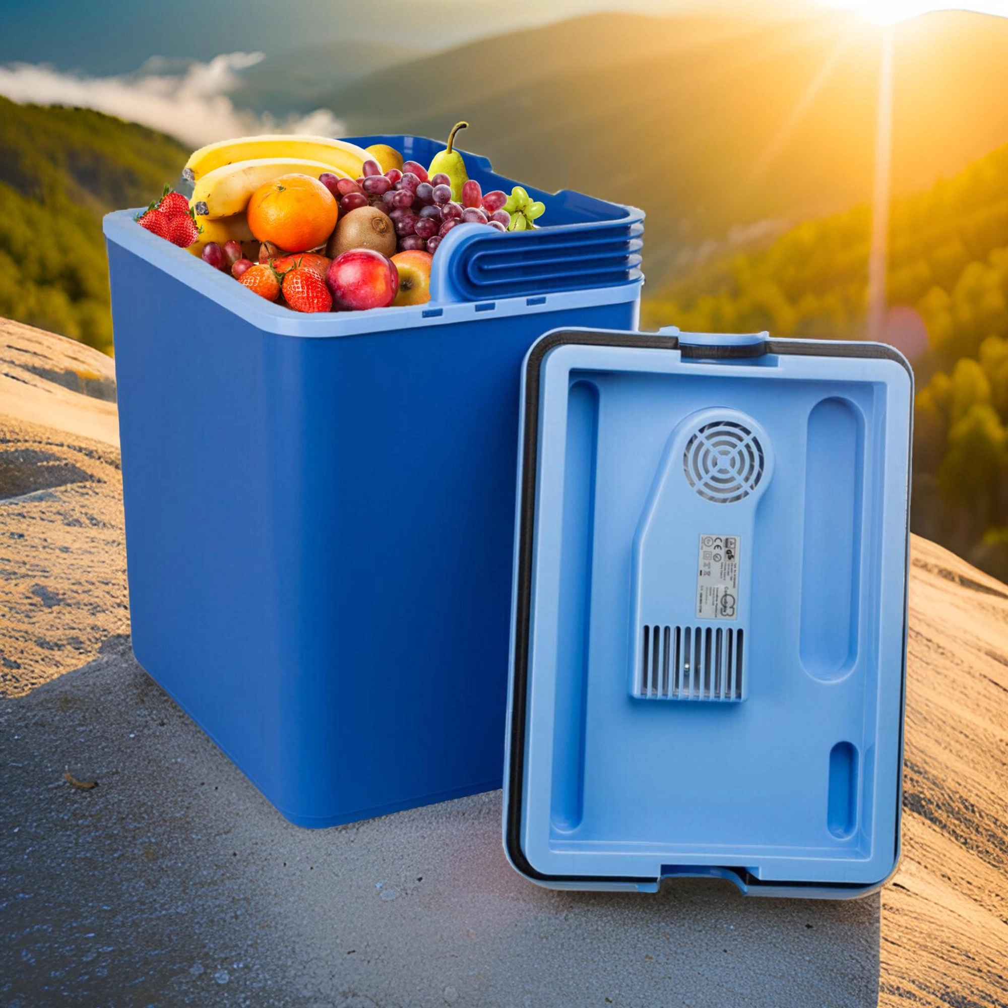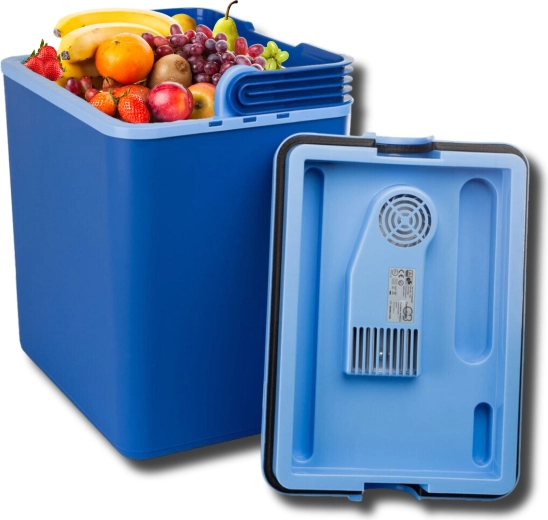 Het geïntegreerde thermo-elektrische element zorgt voor stabiele koeling zonder freon. Ventilatieroosters in het deksel ondersteunen de luchtcirculatie voor betere prestaties onderweg.